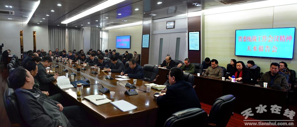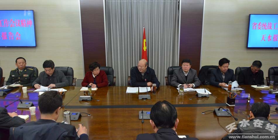 為深入宣傳貫徹中央、省委統(tǒng)戰(zhàn)工作會議精神《中央統(tǒng)一戰(zhàn)線工作條例(試行)》,12月25日,天水市特邀省委統(tǒng)戰(zhàn)部副部長郭清祥為市委中心學習組和天水師范學院黨委中心學習組作省委統(tǒng)戰(zhàn)工作會議精神的專題報告。市委副書記、市政協(xié)主席宋尚有主持報告會。 市領導李美華、張明泰、蔣曉強、蒲軍、李建中、霍衛(wèi)平出席報告會。