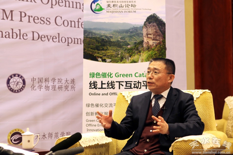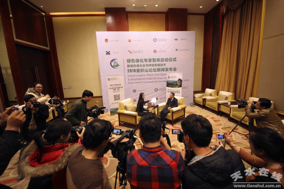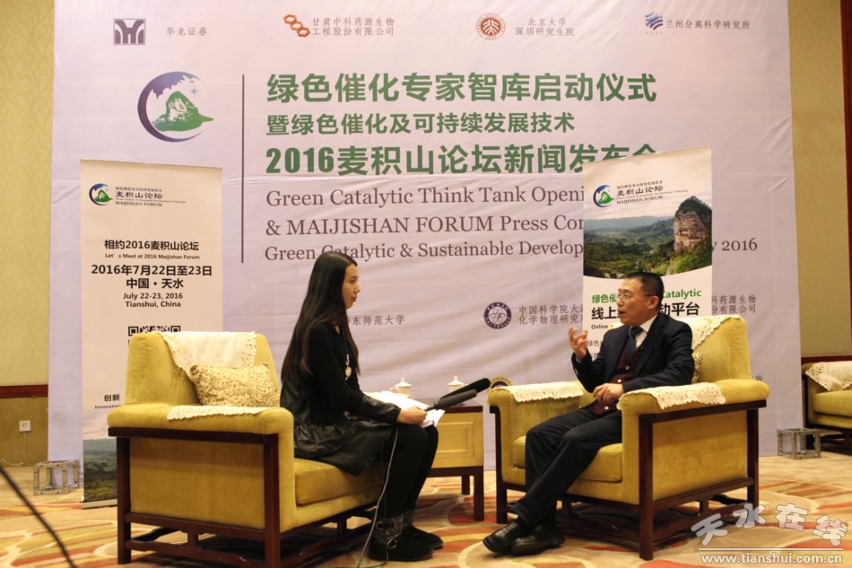 12月24日,綠色催化專家智庫(kù)啟動(dòng)儀式暨2016綠色催化和可持續(xù)發(fā)展技術(shù)麥積山論壇新聞發(fā)布會(huì)在蘭州舉行。記者就相關(guān)問(wèn)題專題采訪了天水市委書(shū)記王銳。