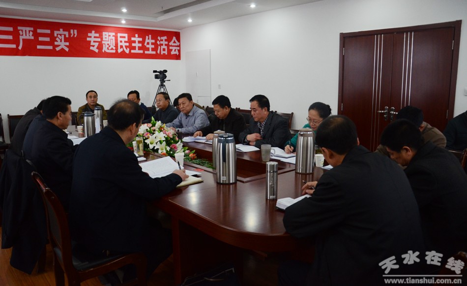 1月12日,天水市人大常委會(huì)主任柴金祥參加指導(dǎo)市林業(yè)局“三嚴(yán)三實(shí)”專題民主生活會(huì)。柴金祥強(qiáng)調(diào),市林業(yè)局領(lǐng)導(dǎo)班子要繼續(xù)抓好學(xué)習(xí),牢固樹立“三嚴(yán)三實(shí)”的檢驗(yàn)標(biāo)尺,擰緊思想上的“總開關(guān)”。 市人大常委會(huì)秘書長(zhǎng)宋建平參加了當(dāng)天的民主生活會(huì)。