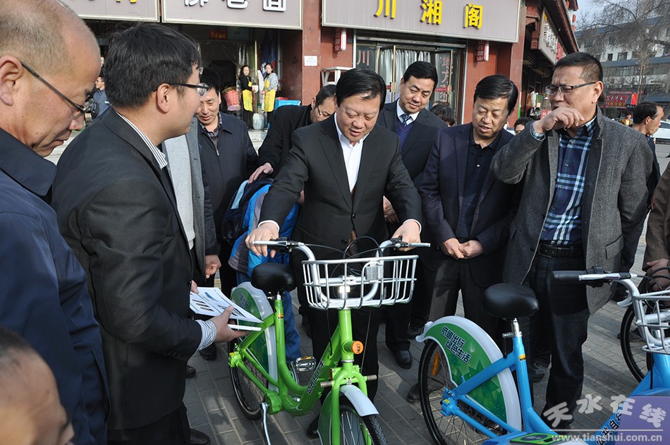 公共自行車交通系統(tǒng)項(xiàng)目是市政府確定的2016年城建民生項(xiàng)目之一,也是推進(jìn)“三城聯(lián)創(chuàng)”工作的重要舉措。為了加快項(xiàng)目建設(shè),加強(qiáng)運(yùn)行監(jiān)管,市政府成立了由副市長(zhǎng)王鈞任組長(zhǎng),市政府督查室主任楊勝利以及市民政、建設(shè)、運(yùn)管部門負(fù)責(zé)人任副組長(zhǎng),其他相關(guān)部門為成員單位的天水市公共自行車交通服務(wù)系統(tǒng)建設(shè)和管理工作領(lǐng)導(dǎo)小組,在市建設(shè)局設(shè)立了專門負(fù)責(zé)此項(xiàng)工作的辦公室,明確了各相關(guān)部門的職責(zé)、建設(shè)時(shí)限、運(yùn)營(yíng)管理和工作要求,為該項(xiàng)目的建設(shè)、管理、運(yùn)營(yíng)提供了重要保障。