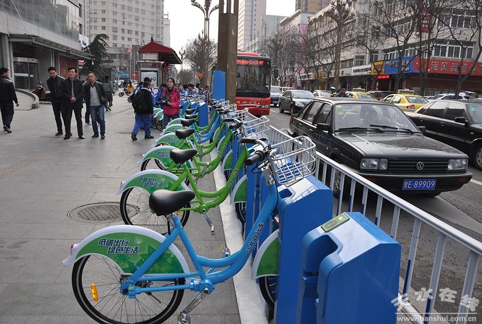 為進(jìn)一步完善市區(qū)綜合交通運(yùn)輸體系,推廣綠色公共交通,倡導(dǎo)市民改善出行方式,緩解城市交通壓力,市政府決定采用政府購(gòu)買服務(wù)模式,建設(shè)公共自行車交通系統(tǒng)項(xiàng)目,鼓勵(lì)市民利用公共自行車開展競(jìng)技、健身、旅游等多種活動(dòng),倡導(dǎo)綠色、低碳、生態(tài)、休閑的出行方式。該項(xiàng)目一期總投資350萬元,在秦州、麥積兩區(qū)主城區(qū)居民、人流密集區(qū)域及各旅游景點(diǎn)建設(shè)公共自行車租賃服務(wù)網(wǎng)點(diǎn)54個(gè),投放1000輛公租自行車。項(xiàng)目從2月26日開工建設(shè),目前正在進(jìn)行設(shè)備安裝,計(jì)劃在今年5月底竣工投運(yùn)。