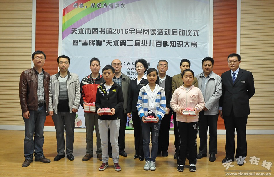 4月23日,以“閱讀,從圖書館出發(fā)”為主題的天水市圖書館2016年全民閱讀活動(dòng)啟動(dòng)儀式暨天水市第二屆少兒百科知識(shí)大賽在市圖書館報(bào)告廳舉行。