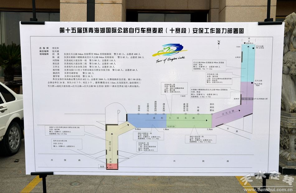 7月21日,天水市委常委、政法委書記趙衛(wèi)東,市政府黨組成員、市公安局局長黃金奎帶領(lǐng)綜治、公安、體育、建設(shè)、交通、安監(jiān)、綜合執(zhí)法等部門負(fù)責(zé)同志,深入秦州區(qū)、麥積區(qū)、清水縣和張家川縣“環(huán)湖賽”天水賽段沿線,就相關(guān)安保措施落實(shí)情況進(jìn)行了現(xiàn)場督查。趙衛(wèi)東強(qiáng)調(diào),各縣區(qū)、各相關(guān)部門要從點(diǎn)滴抓細(xì),從細(xì)節(jié)入手,扎實(shí)做好安保各項(xiàng)工作,確保天水賽段萬無一失。