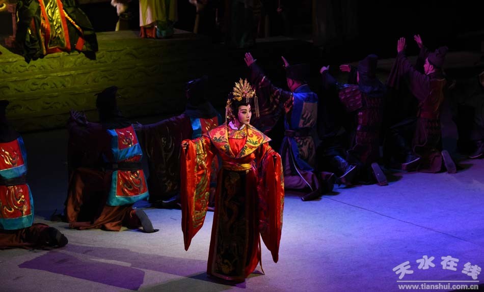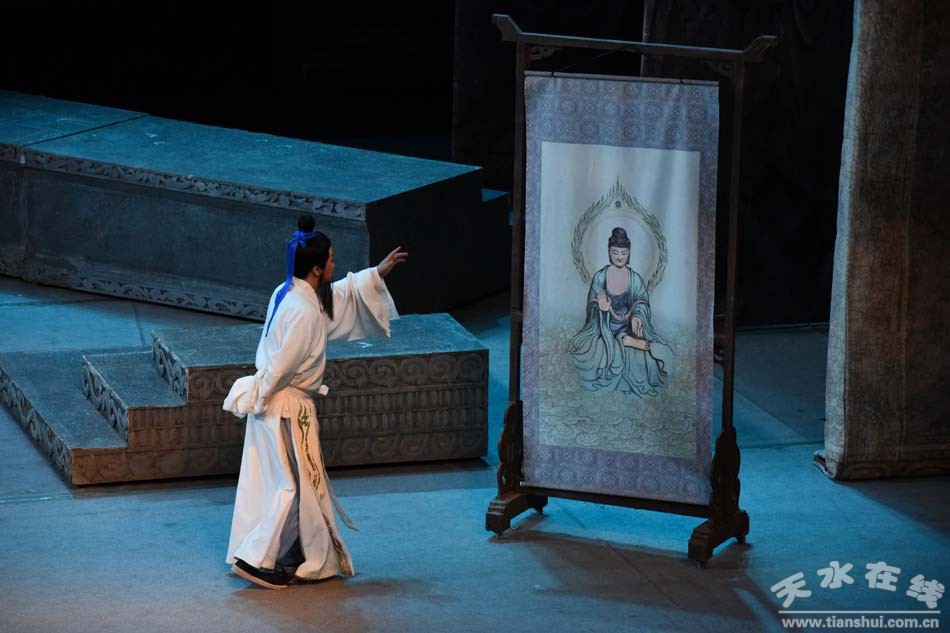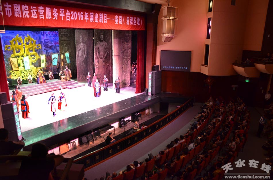 天水在線8月28日北京報道 8月27日晚,天水市西秦腔研究院精品保留劇目《麥積圣歌》在北京中國評劇大劇院精彩上演,這是該劇第三次赴京城參加演出。跌宕起伏的故事情節(jié),尖銳激烈的矛盾沖突,精湛到位的演員表演,美輪美奐的音樂舞美贏得了現場近千名觀眾的熱烈掌聲。今晚,《麥積圣歌》還將繼續(xù)演出一場。