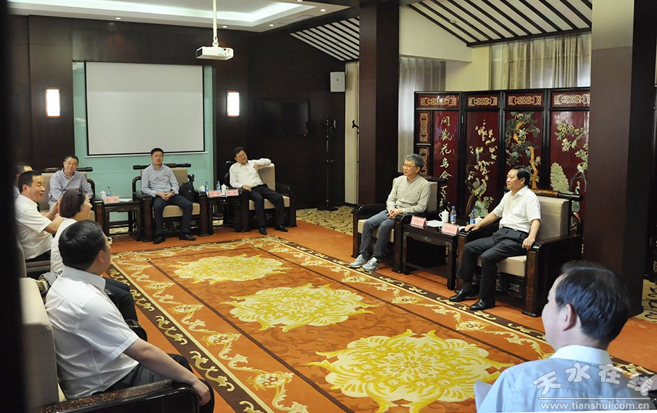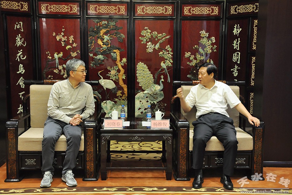 楊維俊對劉曉春一行到天水來考察調(diào)研表示歡迎,并簡要介紹了天水市經(jīng)濟社會發(fā)展、金融業(yè)發(fā)展與金融生態(tài)環(huán)境、項目建設(shè)等情況。楊維俊說,天水是全國金融生態(tài)示范市,近年來市委、市政府高度重視金融工作,全市金融生態(tài)環(huán)境逐步優(yōu)化,金融業(yè)穩(wěn)健發(fā)展,金融對項目建設(shè)和經(jīng)濟發(fā)展的支撐保障作用日益凸顯。天水工業(yè)基礎(chǔ)較好,工業(yè)經(jīng)濟發(fā)展?jié)摿薮,基礎(chǔ)設(shè)施建設(shè)步伐加快,資金需求量大。所有這些都為金融與經(jīng)濟緊密結(jié)合、共同發(fā)展、互利共贏提供了十分有利的條件。浙商銀行天水分行入駐天水半年時間,不僅帶來了新的金融理念,而且在服務(wù)天水基礎(chǔ)項目建設(shè)、中小微企業(yè)發(fā)展等方面做出了積極貢獻,并專門制作發(fā)行了“伏羲聯(lián)名卡”,在宣傳推介天水上起到了積極的助推作用。希望浙商銀行進一步加強和天水市有關(guān)方面的金融合作,不斷深化合作內(nèi)容,在工業(yè)、農(nóng)業(yè)和城市建設(shè)等多個方面加大支持力度,實現(xiàn)互惠互利,助推天水經(jīng)濟社會實現(xiàn)持續(xù)較快發(fā)展。