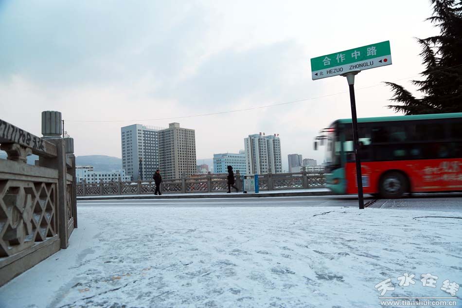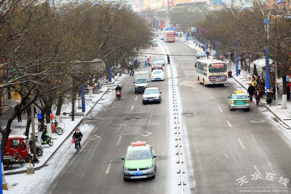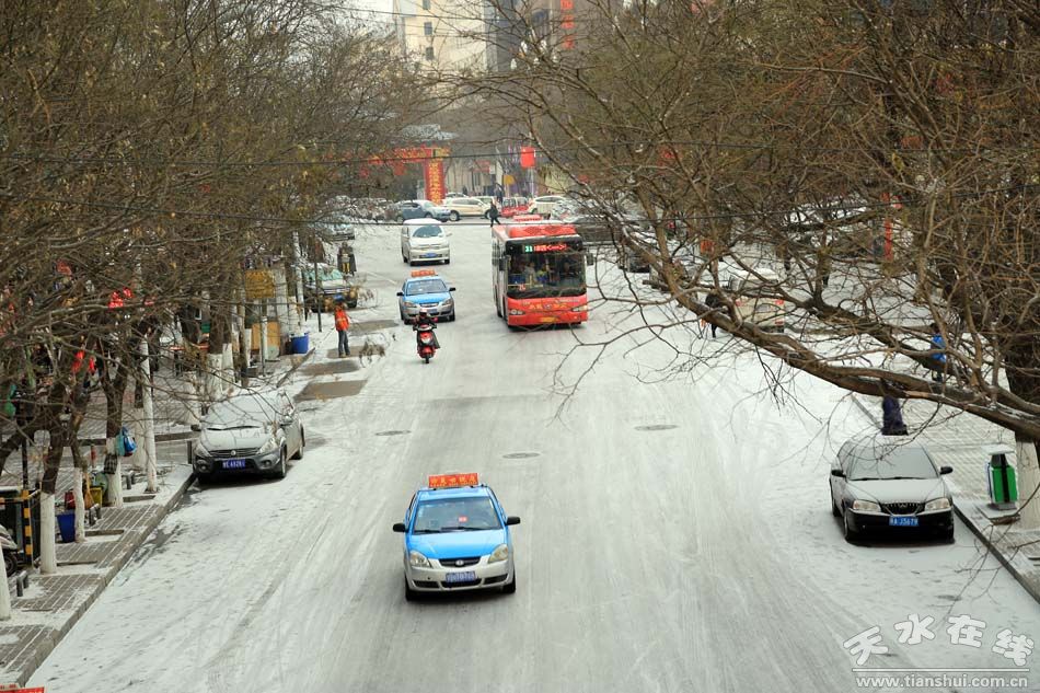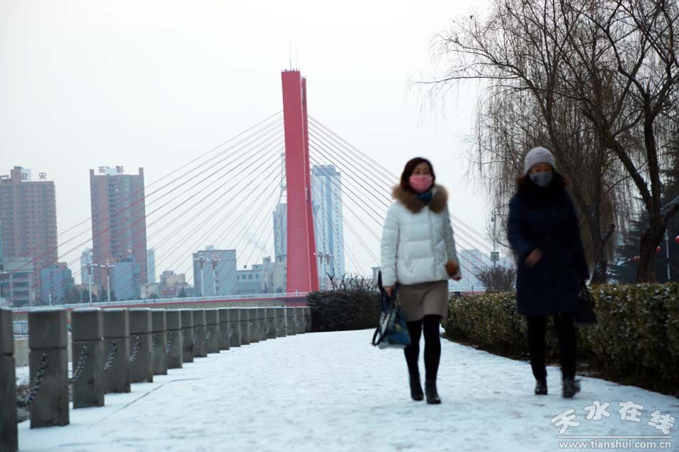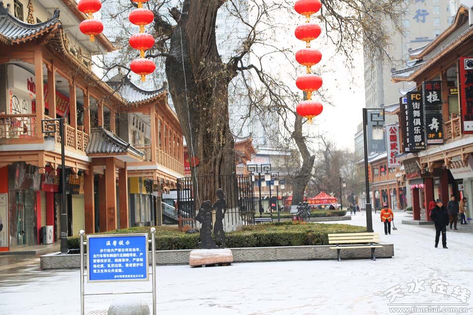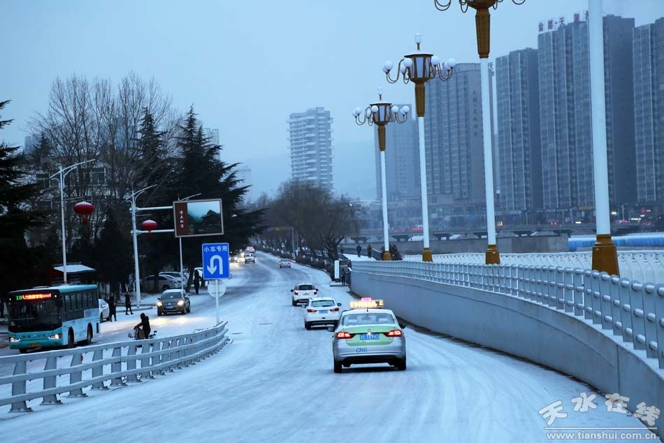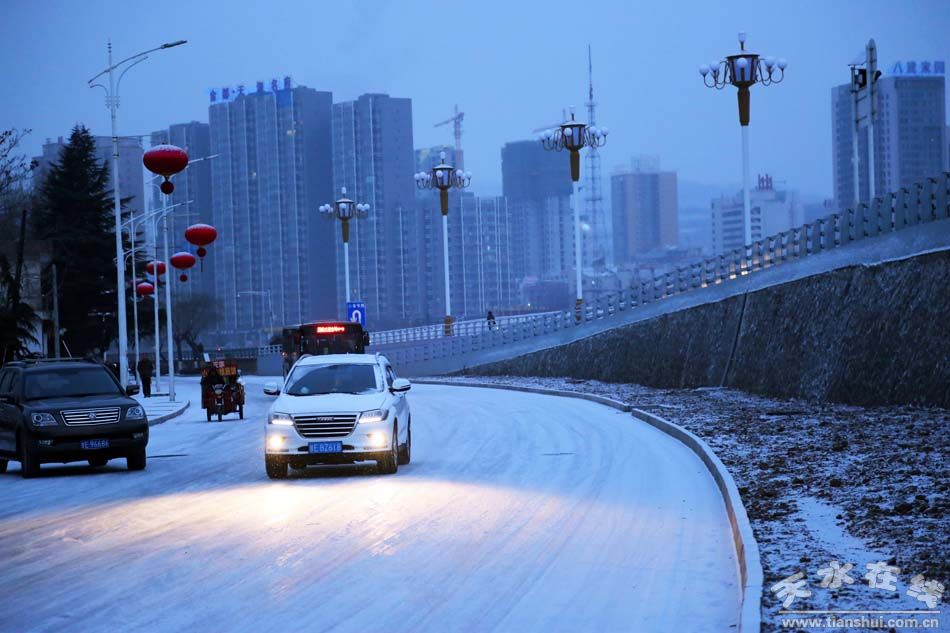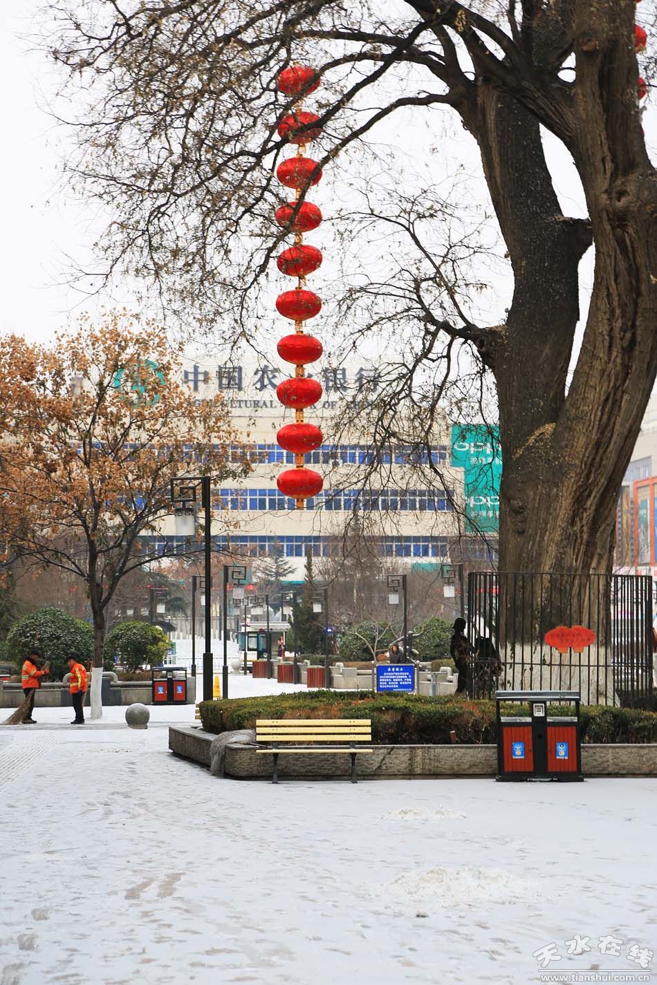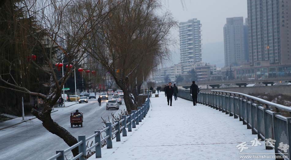 1月11日,農(nóng)歷臘月十四,天水城區(qū)迎來2017年的第三場雪,這場雪比前兩場雪要下的大一些,城區(qū)大街小巷都落下了厚厚的一層積雪,把古城天水裝扮得分外妖嬈美麗。