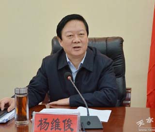 1月24日,天水市委副書(shū)記、市政府黨組書(shū)記、市長(zhǎng)楊維俊主持召開(kāi)市政府黨組會(huì)議,學(xué)習(xí)十八屆中央紀(jì)委七次全會(huì)、十二屆省紀(jì)委七次全會(huì)精神和關(guān)于推進(jìn)安全生產(chǎn)領(lǐng)域改革發(fā)展的意見(jiàn)。市政府黨組副書(shū)記趙衛(wèi)東,市政府黨組成員李曉東、張建杰、郝文杰、何東、王燕、王祥林出席會(huì)議,副市長(zhǎng)霍衛(wèi)平列席會(huì)議。