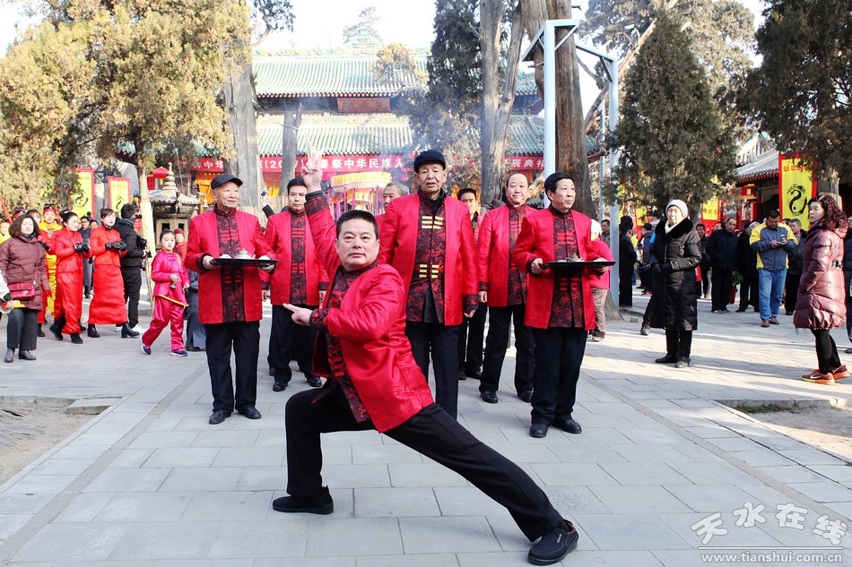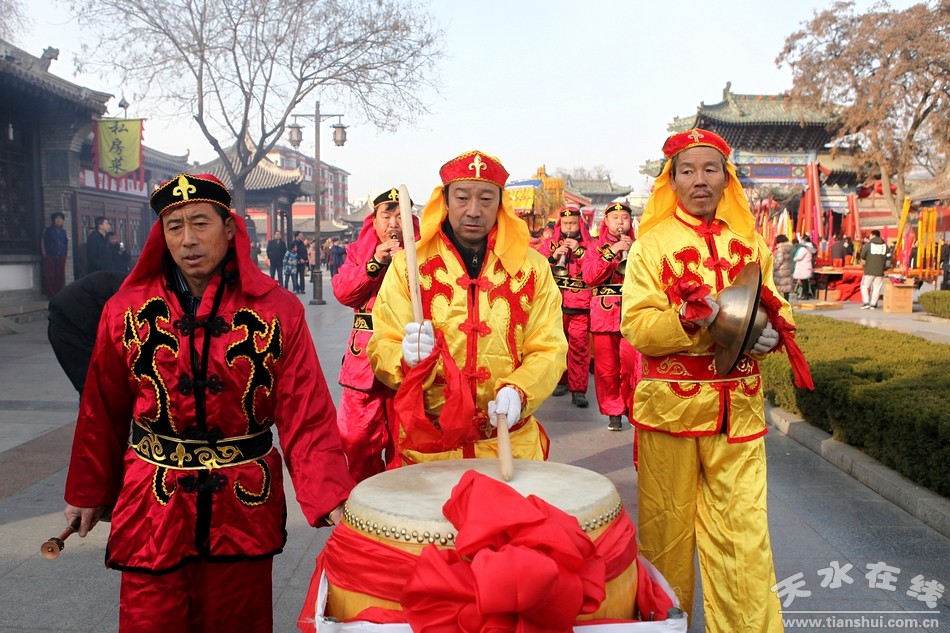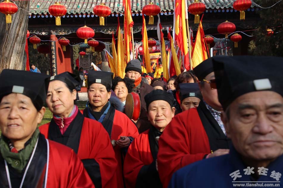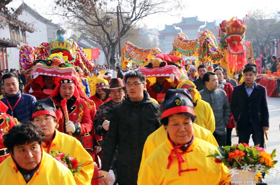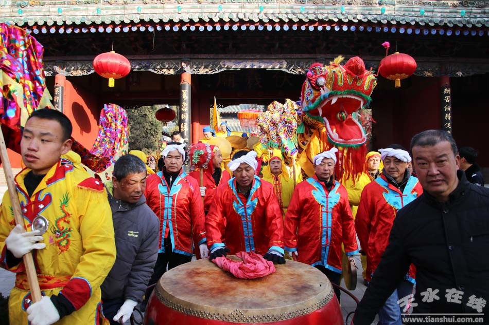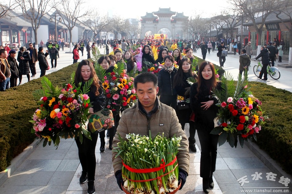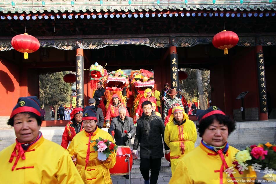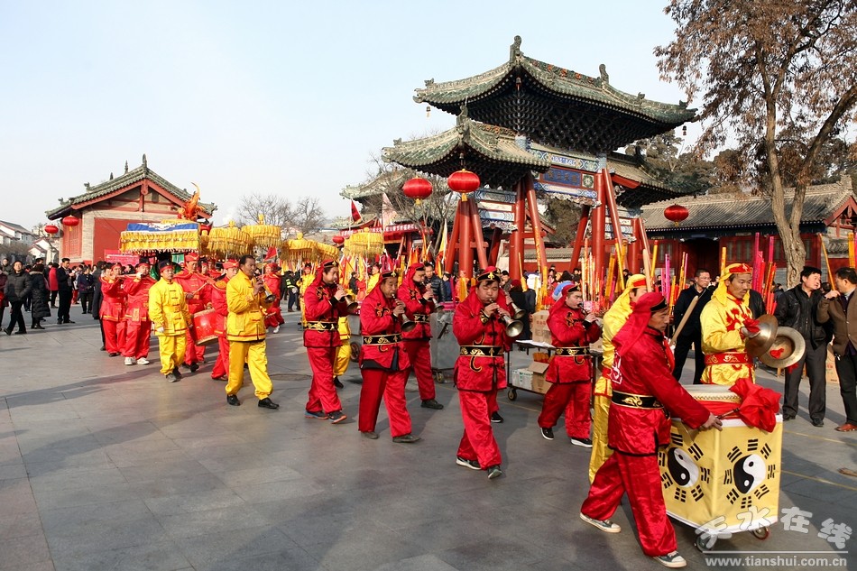 2月9(農(nóng)歷正月十三)日,吉祥中華—丁酉(2017)年天水伏羲廟春祭伏羲活動(dòng)舉行祈福納祥迎圣水儀式。取水供圣儀式結(jié)束后,在伏羲廟大門(mén)對(duì)面的戲樓前舉行了出榜文儀式。之后,方神黑爺像在浩浩蕩蕩儀仗隊(duì)伍的“護(hù)駕”下“巡游”伏羲城。