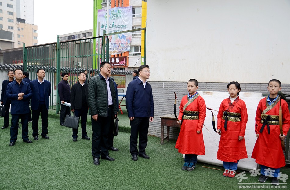 (天水市委常委、副市長(zhǎng)李曉東在公園小學(xué)調(diào)研智慧校園建設(shè)情況。)