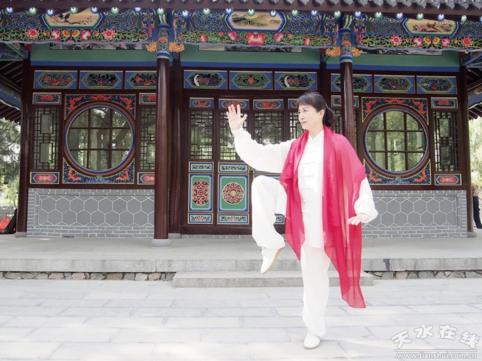 許多隊員反映自從參加鍛煉后精神狀態(tài)和身體狀況比以前有明顯的變化,特別是患有慢性病和老年性疾病的隊員更體會到參加鍛煉的好處。隊員們以自己真實的體會和形象向廣大群眾宣傳展示了健康向上的生活理念,在潛移默化中影響和帶動了周邊的人們投身到健身活動中。隊員由最初對太極拳一無所知到逐漸掌握孫式及楊式傳統(tǒng)太極拳的完整套路。2015、16年先后參加了兩屆伏羲文化節(jié)、非物質(zhì)文化展示展演開幕活動的太極拳表演,及即將參加2017年“問道伏羲”——羲皇故里伏羲太極拳展演活動。