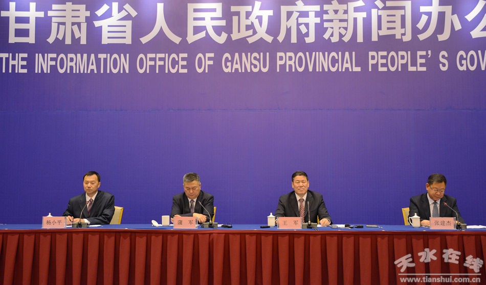 天水在線蘭州報道 6月9日上午,甘肅省人民政府新聞辦公室在蘭州舉行2017(丁酉)年公祭中華人文始祖伏羲大典暨第二十八屆中國天水伏羲文化旅游節(jié)新聞發(fā)布會。天水市委副書記、代市長王軍,市委常委、宣傳部長蒲軍,副市長張建杰出席新聞發(fā)布會。