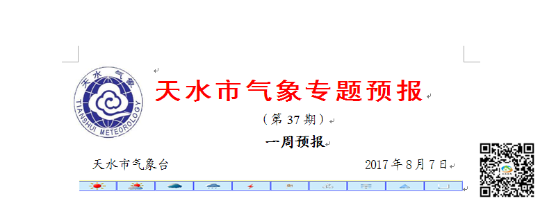 根據(jù)最新的資料分析,預(yù)計(jì)降水于今天夜間結(jié)束,未來一周天氣以晴到多云為主,11日我市有陣雨天氣。氣溫預(yù)報(bào)以秦州區(qū)為例,日最低氣溫16~19℃,日最高氣溫31~33℃,日平均氣溫22~25℃。