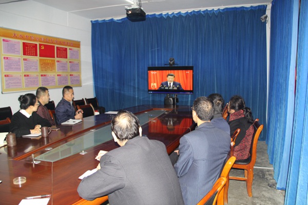 10月18日上午8時50分,天水市信訪局全體黨員干部整齊地坐在視頻會議室,翹首以待觀看中國共產(chǎn)黨第十九次全國代表大會的盛大開幕,聆聽習(xí)近平代表十八屆中央委員會向大會作報告。大家聚精會神,邊看邊聽邊記錄核心內(nèi)容和精彩論斷。