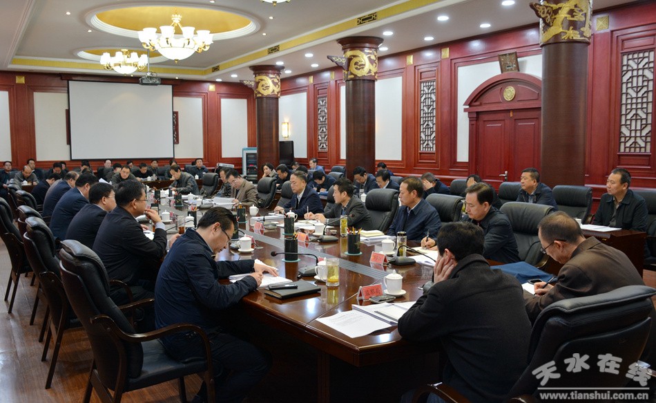 11月1日,天水市委副書記、市政府黨組書記、市長王軍主持召開市政府黨組(擴(kuò)大)會(huì)議,專題學(xué)習(xí)黨的十九大精神和省委常委會(huì)(擴(kuò)大)會(huì)議、省政府黨組(擴(kuò)大)會(huì)議暨全體會(huì)議以及市委常委會(huì)(擴(kuò)大)會(huì)議精神,安排部署市政府系統(tǒng)學(xué)習(xí)貫徹黨的十九大精神工作。市政府黨組副書記趙衛(wèi)東,黨組成員李曉東、宮輝、張建杰、郝文杰、何東、王祥林參加會(huì)議。