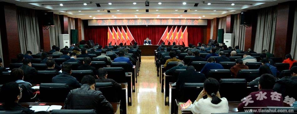 12月8日,天水市委常委、秘書長(zhǎng)、政法委書記蔣曉強(qiáng)為市級(jí)辦公部門和政法系統(tǒng)黨員干部作黨的十九大精神宣講輔導(dǎo),并結(jié)合辦公部門和政法系統(tǒng)實(shí)際,簡(jiǎn)要總結(jié)了全年工作情況,對(duì)下一步工作作了安排部署。