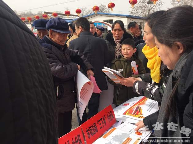 為深入學習宣傳貫徹黨的十九大精神,充分發(fā)揮文化科技衛(wèi)生“三下鄉(xiāng)”活動的品牌效應和示范作用。2月9日,天水市文化科技衛(wèi)生“三下鄉(xiāng)”活動在張家川縣大陽村集中開展。天水市司法局依托此次活動,廣泛深入開展了“法律進鄉(xiāng)村”活動,用群眾喜聞樂見的形式將“法律大餐”送到農(nóng)民家門口,幫助和引導當?shù)厝罕娮鸱▽W法守法用法,為我市春節(jié)期間營造良好的法治環(huán)境。
