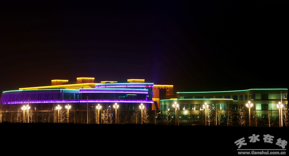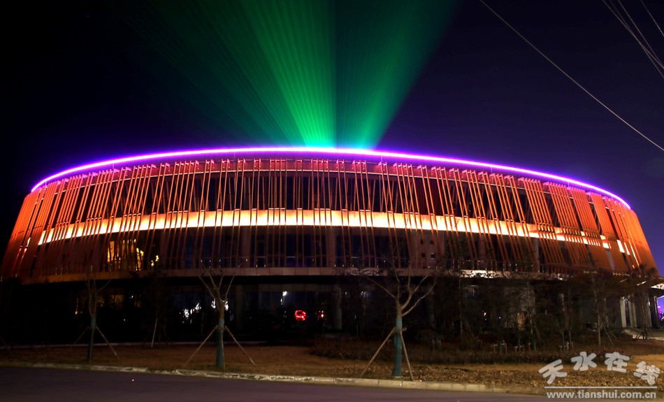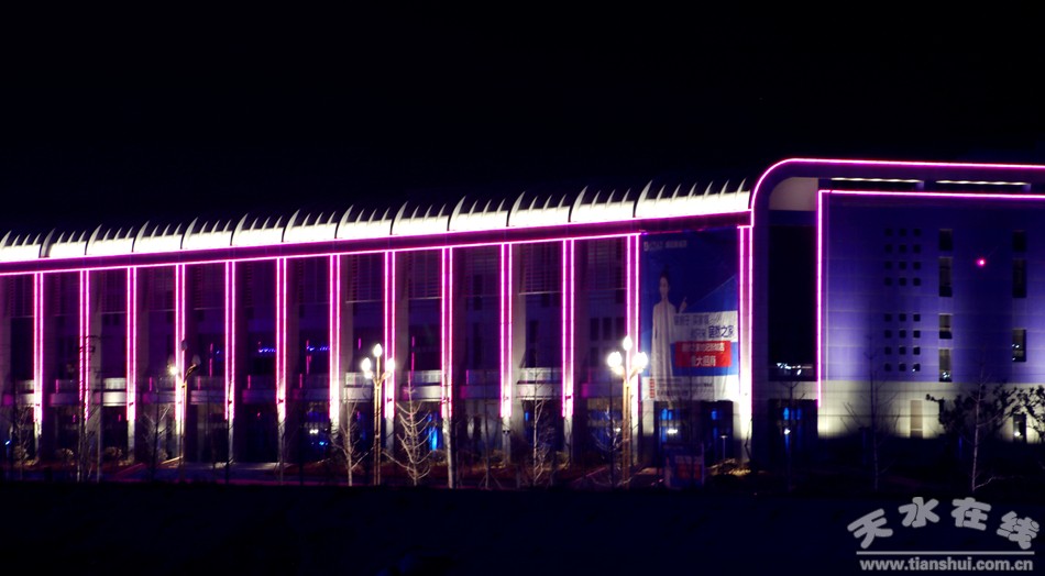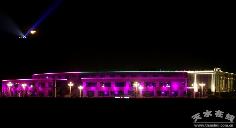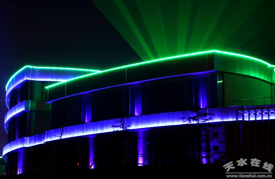 天水商貿(mào)城亮化工程自2017年5月開(kāi)工,2018年元旦開(kāi)始試運(yùn)行。在設(shè)計(jì)元素上,按照各館不同的使用功能,采用了不同的設(shè)計(jì)風(fēng)格,會(huì)展中心以金黃色暖光為主,以LED燈、勾畫輪廓線條,配合洗墻燈、探照泛光燈照亮整個(gè)建筑,彰顯了會(huì)展中心宏偉震撼的氣勢(shì);文化藝術(shù)館和商業(yè)館以漸變七彩色為主,加以激光射燈和泛光燈的點(diǎn)綴,渲染了濃郁的文化氣息和商業(yè)氛圍,增添了節(jié)日氣氛。