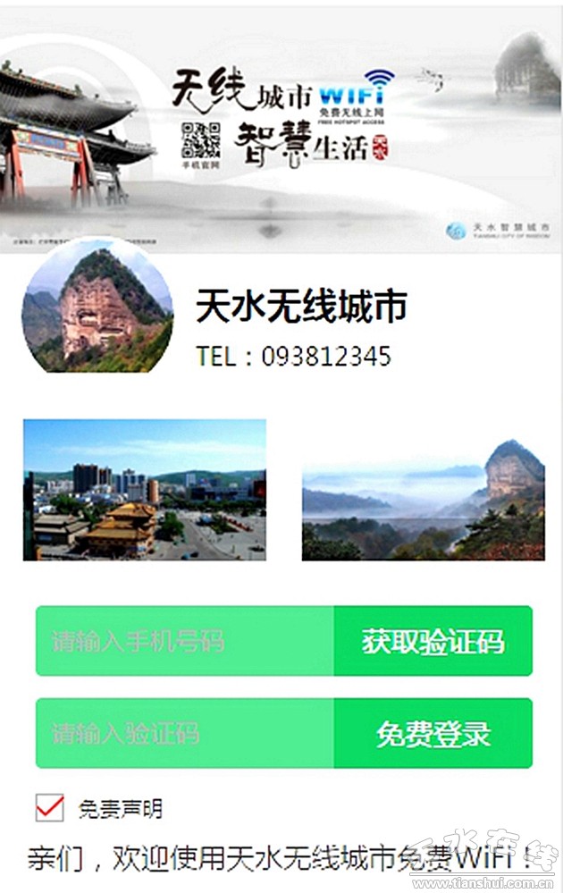 龍城廣場、伏羲廟廣場及步行街、天河廣場、蘭天城市廣場、公交站點、……秦州麥積主城區(qū)191個點公共免費wifi網絡正在加緊建設開通。如今,人們走在大街上,隨時隨地就可享受便捷高效的免費wifi網絡,只要打開手機進行wifi搜索無線接入點“awifi”,立即就能看到有“天水無線城市”手機認證頁面,通過手機短信獲得密碼,就能免費接入上網。