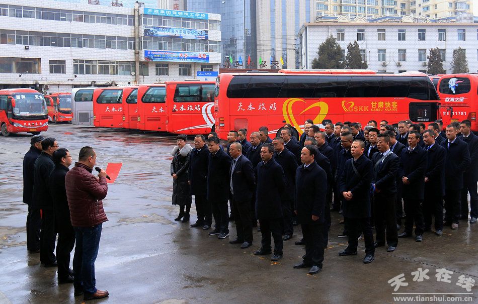 天嘉交通旅游公司總經(jīng)理黃海龍作動(dòng)員講話(huà):雄雞辭歲,金犬迎春,在這萬(wàn)家團(tuán)圓之時(shí),為達(dá)成“效益春運(yùn)、安全春運(yùn)、和諧春運(yùn)”的目標(biāo),天嘉集團(tuán)應(yīng)四川省宜賓市城鄉(xiāng)道路運(yùn)輸管理局請(qǐng)求,抽調(diào)20輛大型高三級(jí)客車(chē)參加宜賓春運(yùn)工作。為能讓當(dāng)?shù)赝獬鰟?wù)工人員“走得了、走得好”, 天嘉集團(tuán)在運(yùn)力安排、安全監(jiān)督、服務(wù)質(zhì)量等方面做了大量、充分的準(zhǔn)備。在運(yùn)力安排上,選調(diào)20輛技術(shù)性能良好的大型客車(chē),在安全方面,嚴(yán)把“人、車(chē)、物”三關(guān),為承運(yùn)務(wù)工人員提供全過(guò)程的安全保障,在服務(wù)方面,篩選了公司駕駛技術(shù)良好、品質(zhì)優(yōu)秀、安全服務(wù)意識(shí)強(qiáng)的駕駛員40名,并在準(zhǔn)備階段從車(chē)容車(chē)貌、服務(wù)用語(yǔ)等方面做了崗前培訓(xùn)教育。切實(shí)讓出行人員在乘坐過(guò)程中真正體會(huì)到天嘉集團(tuán)“幸福春運(yùn)”的含義。