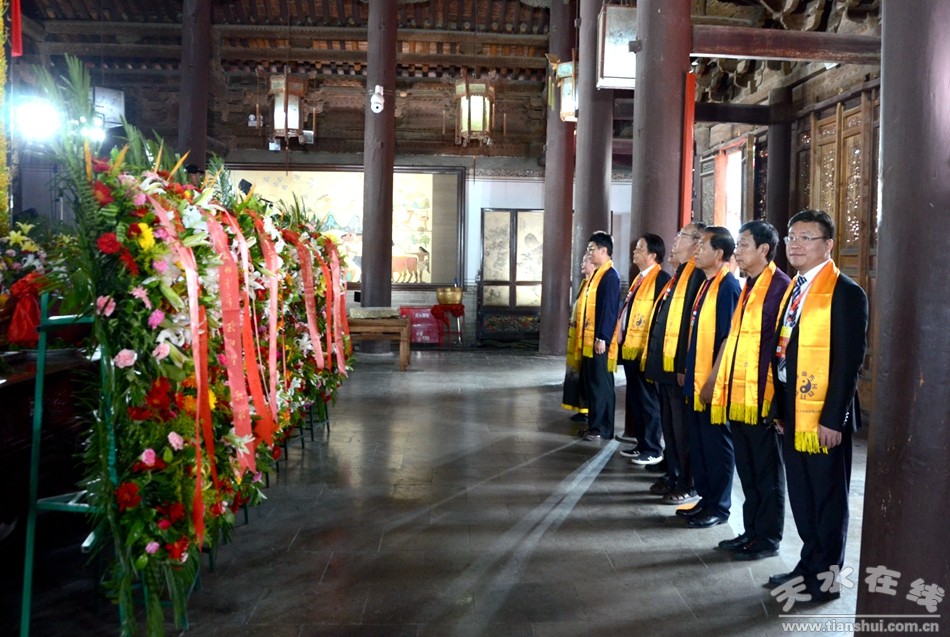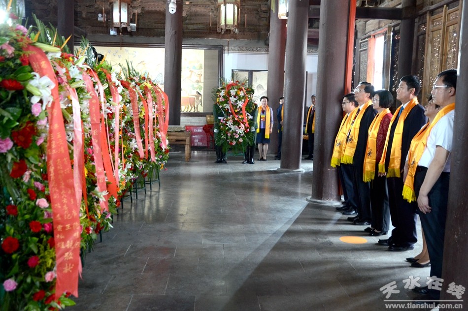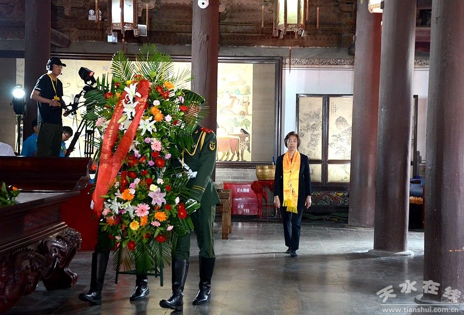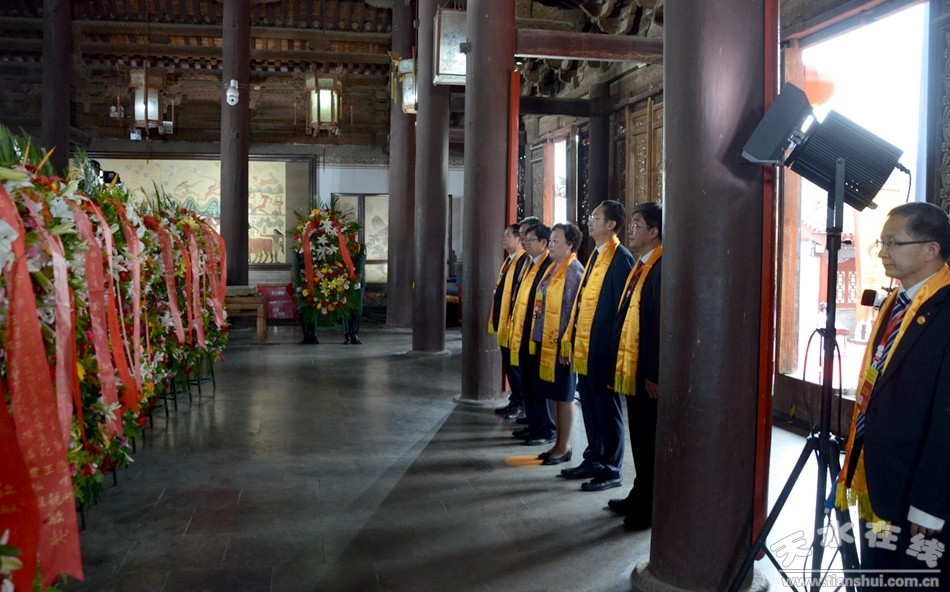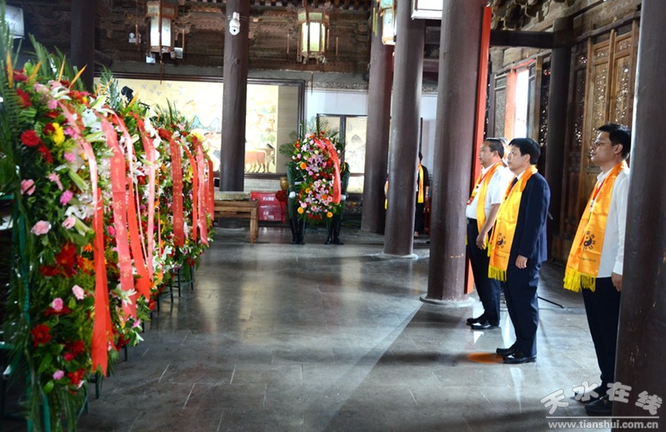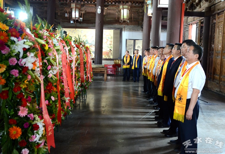 。ㄈ珖(guó)政協(xié)常委、中國(guó)道教協(xié)會(huì)原會(huì)長(zhǎng)任法融,澳門(mén)佛教(國(guó)際)聯(lián)合會(huì)會(huì)長(zhǎng)釋戒晟,法門(mén)寺堂主釋洪利,十三屆全國(guó)政協(xié)常委、甘肅省政協(xié)原副主席、原伏羲文化研究會(huì)執(zhí)行會(huì)長(zhǎng)周宜興,甘肅省政協(xié)原黨組副書(shū)記、副主席、原中華伏羲文化研究會(huì)會(huì)長(zhǎng)張津梁,甘肅省軍區(qū)原副政委少將楊耀春,甘肅省伏羲文化研究會(huì)副理事長(zhǎng)郝洪濤,廣東省深圳市政協(xié)原副秘書(shū)長(zhǎng)張國(guó)英,原中華伏羲文化研究會(huì)副會(huì)長(zhǎng)張向陽(yáng),清華大學(xué)歷史系教授、博士生導(dǎo)師廖名春敬獻(xiàn)花籃。)