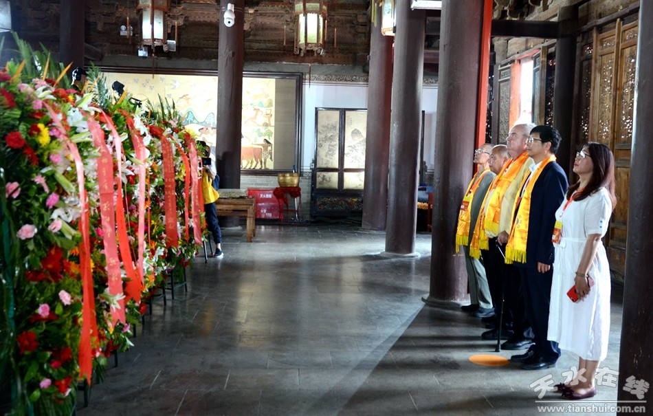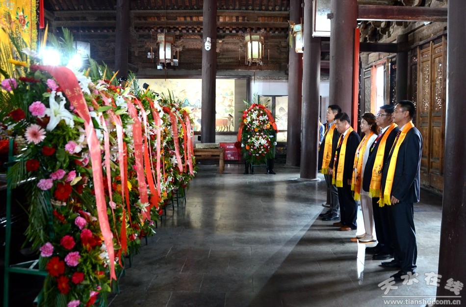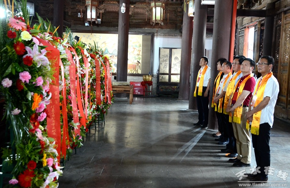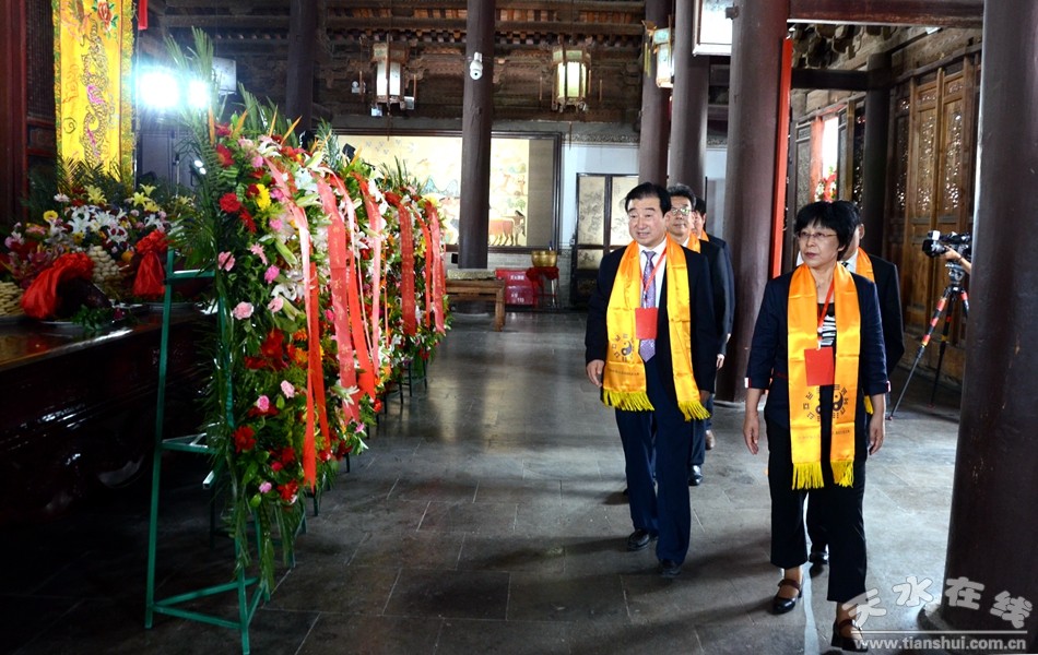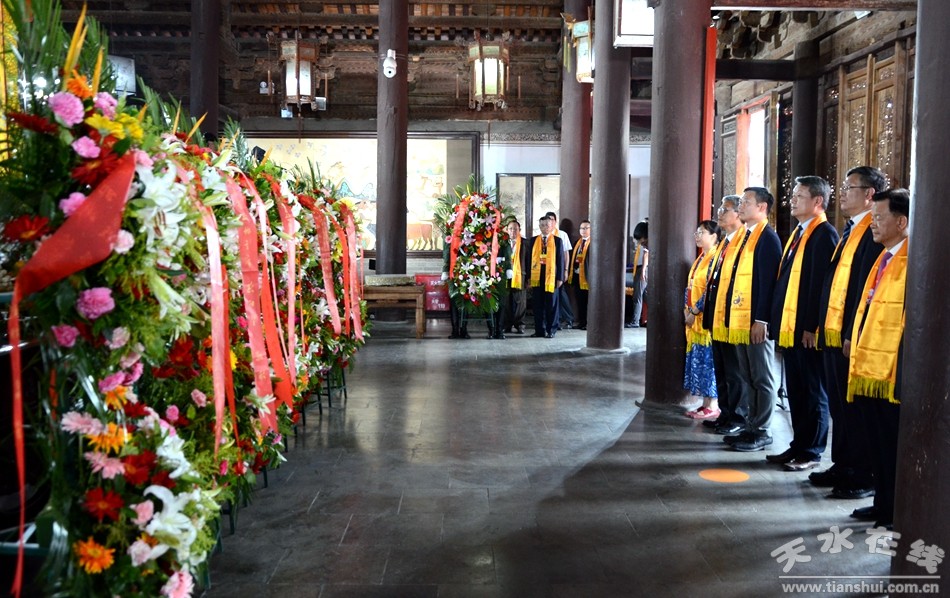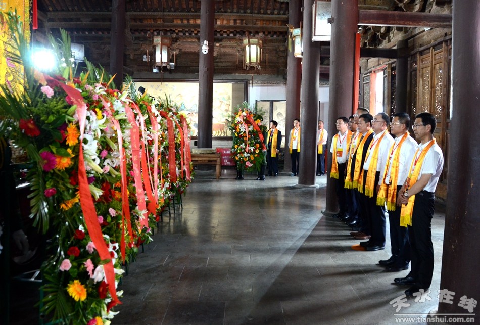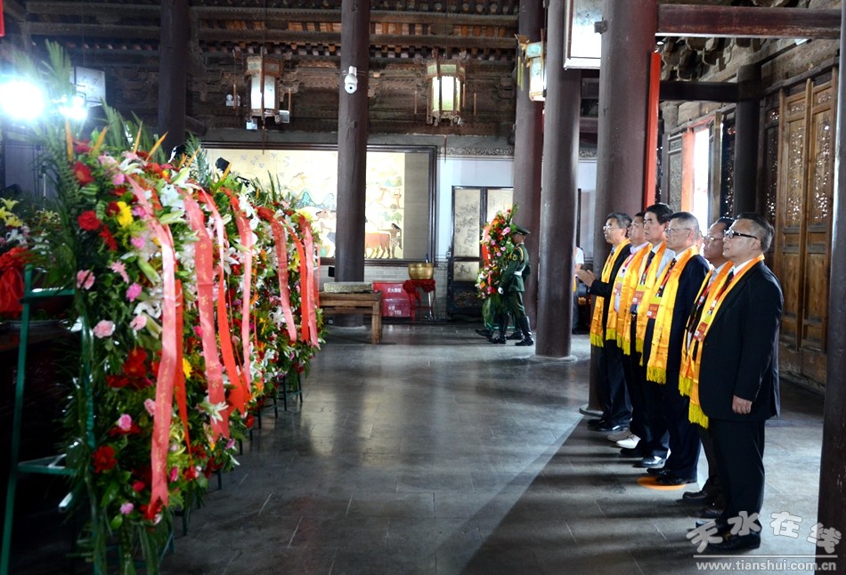 。ㄈ珖(guó)政協(xié)常委、中國(guó)道教協(xié)會(huì)原會(huì)長(zhǎng)任法融,澳門(mén)佛教(國(guó)際)聯(lián)合會(huì)會(huì)長(zhǎng)釋戒晟,法門(mén)寺堂主釋洪利,十三屆全國(guó)政協(xié)常委、甘肅省政協(xié)原副主席、原伏羲文化研究會(huì)執(zhí)行會(huì)長(zhǎng)周宜興,甘肅省政協(xié)原黨組副書(shū)記、副主席、原中華伏羲文化研究會(huì)會(huì)長(zhǎng)張津梁,甘肅省軍區(qū)原副政委少將楊耀春,甘肅省伏羲文化研究會(huì)副理事長(zhǎng)郝洪濤,廣東省深圳市政協(xié)原副秘書(shū)長(zhǎng)張國(guó)英,原中華伏羲文化研究會(huì)副會(huì)長(zhǎng)張向陽(yáng),清華大學(xué)歷史系教授、博士生導(dǎo)師廖名春敬獻(xiàn)花籃。)