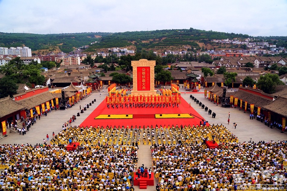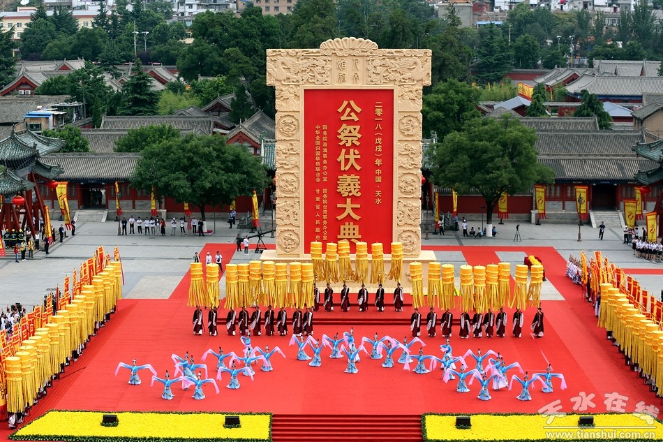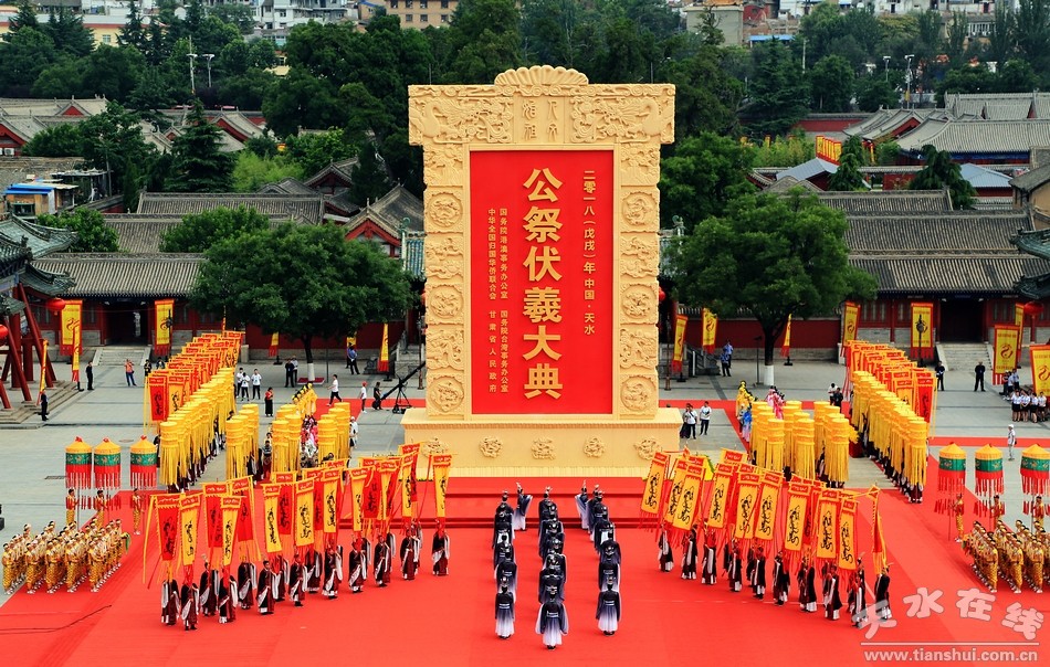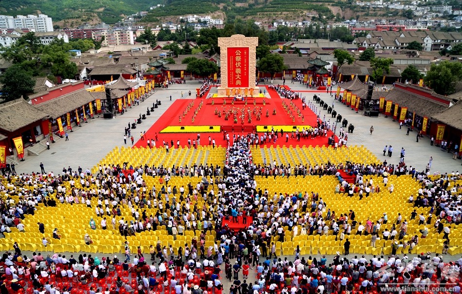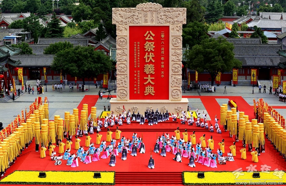 伏羲是中華各民族共同敬仰的人文始祖,位居“三皇之首”、“百王之先”。天水是伏羲的誕生地和伏羲文化的發(fā)祥地,公祭伏羲由來(lái)已久,相沿成習(xí)。據(jù)《史記》等記載,早在春秋時(shí)期就在渭水流域用三牢之禮祭祀伏羲,到了明朝形成了定制。1988年市政府在挖掘歷史文化遺產(chǎn)的基礎(chǔ)上,恢復(fù)了歷史上的公祭伏羲典禮。2005年升格由甘肅省人民政府祭祀,至今已成功舉辦了28屆。經(jīng)過(guò)30年的努力,太昊伏羲祭典列入國(guó)家級(jí)首批非物質(zhì)文化遺產(chǎn)目錄,相繼被國(guó)家有關(guān)機(jī)構(gòu)授予“中國(guó)最具發(fā)展?jié)摿κ蠊?jié)慶”和“最具國(guó)際影響力”節(jié)慶活動(dòng),天水也被評(píng)為“最具魅力節(jié)慶城市”。
