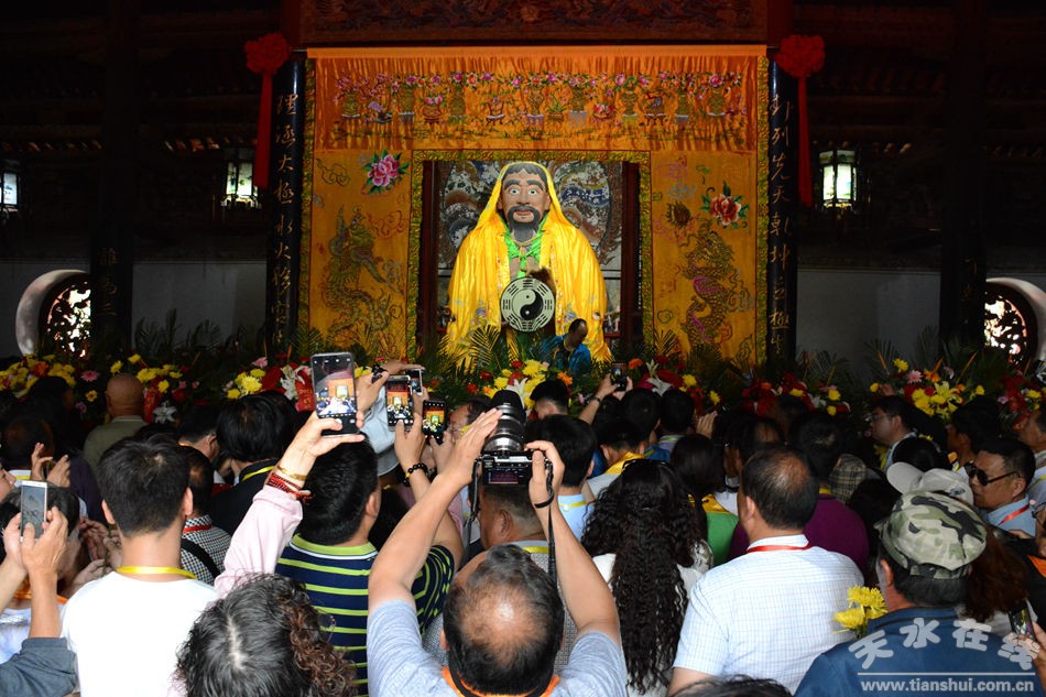 樂(lè)舞告祭后,蘇輝、吳伯雄、歐陽(yáng)堅(jiān)等嘉賓及現(xiàn)場(chǎng)來(lái)賓和群眾依次進(jìn)入伏羲廟,向伏羲圣像敬獻(xiàn)花籃,拜謁伏羲圣像,感懷伏羲圣德。