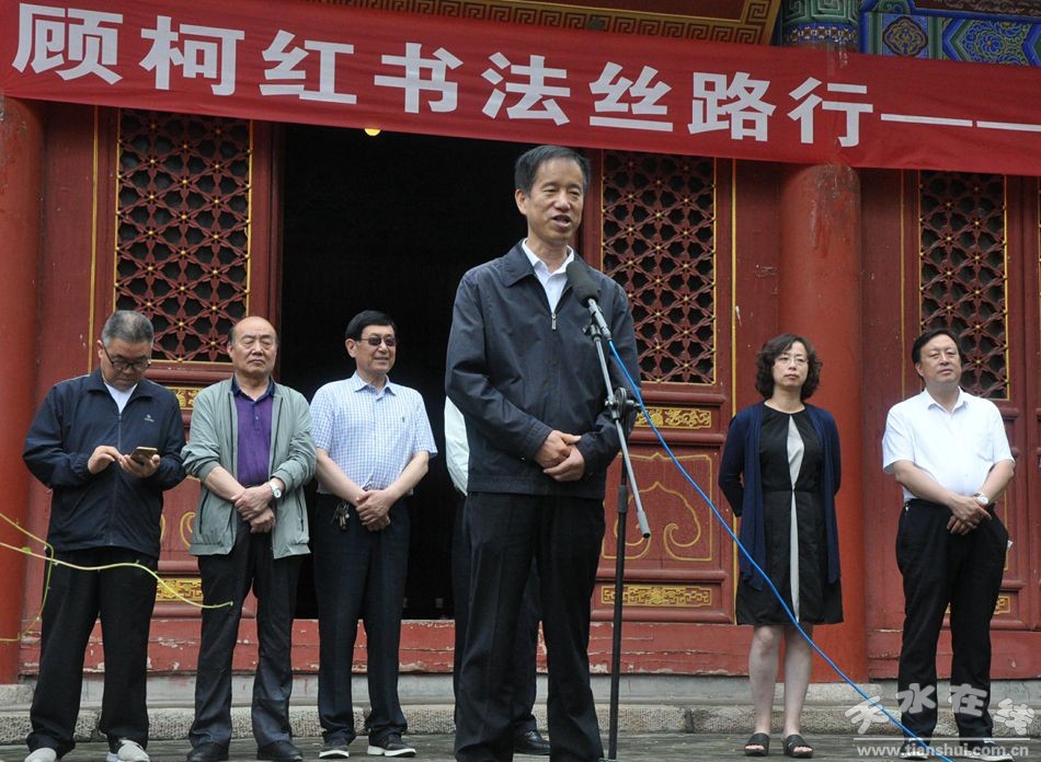 7月11日,由天水市文學(xué)藝術(shù)界聯(lián)合會、天水美術(shù)館、天水書畫院共同主辦的“十方微塵·顧柯紅書法絲路行” 天水第一展在市書畫院展出。市政協(xié)副主席蘇定武出席開幕式,并參觀了展覽。