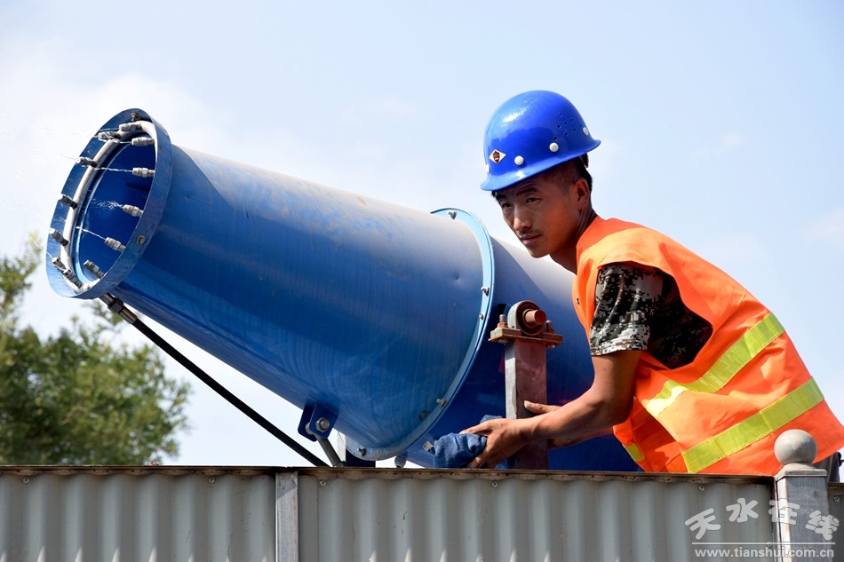 ▲羲皇大道(秦州段)城市市容提升改造工程工地上的勞動(dòng)者