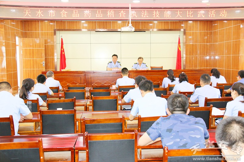 為進(jìn)一步提升全市食藥監(jiān)系統(tǒng)稽查執(zhí)法人員綜合素質(zhì)和執(zhí)法辦案水平,以實(shí)際行動學(xué)習(xí)、貫徹、落實(shí)、踐行黨的十九大精神,8月1日,天水市食藥監(jiān)局組織開展全市食藥監(jiān)系統(tǒng)食品藥品稽查執(zhí)法大比武活動。來自市食品、藥品稽查局及各縣區(qū)食藥監(jiān)局的7支代表隊(duì)、48名稽查執(zhí)法業(yè)務(wù)骨干參加競賽活動。市食藥監(jiān)局黨組書記、局長陳克孝參加活動并做了動員講話。