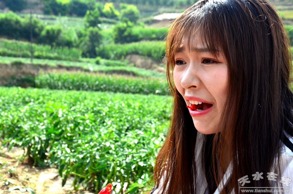8月17日,天水在線5人小組深入武山縣咀頭鄉(xiāng)王山村就航椒四號種植情況進行采訪。在田間地頭,聽專家介紹說,武山航椒四號的特點是抗性好、產(chǎn)量高、適應(yīng)性強、個頭大,關(guān)鍵是辣味十足。當(dāng)即,天水在線小編忍不住就拿起一個辣椒吃了起來,所以就有了下面這樣的一組表情包:
