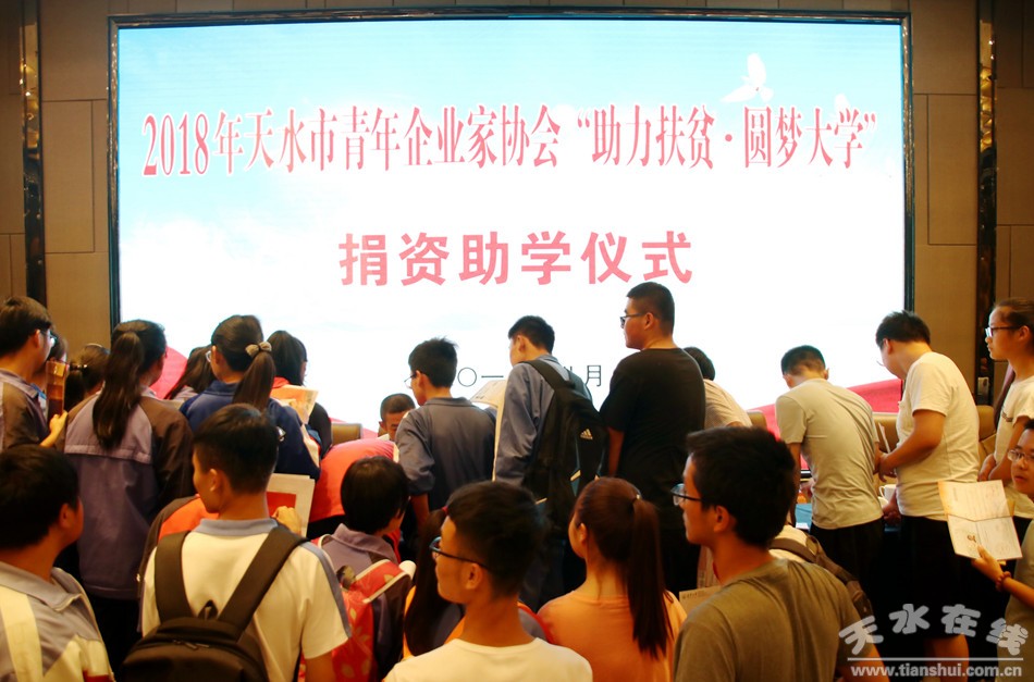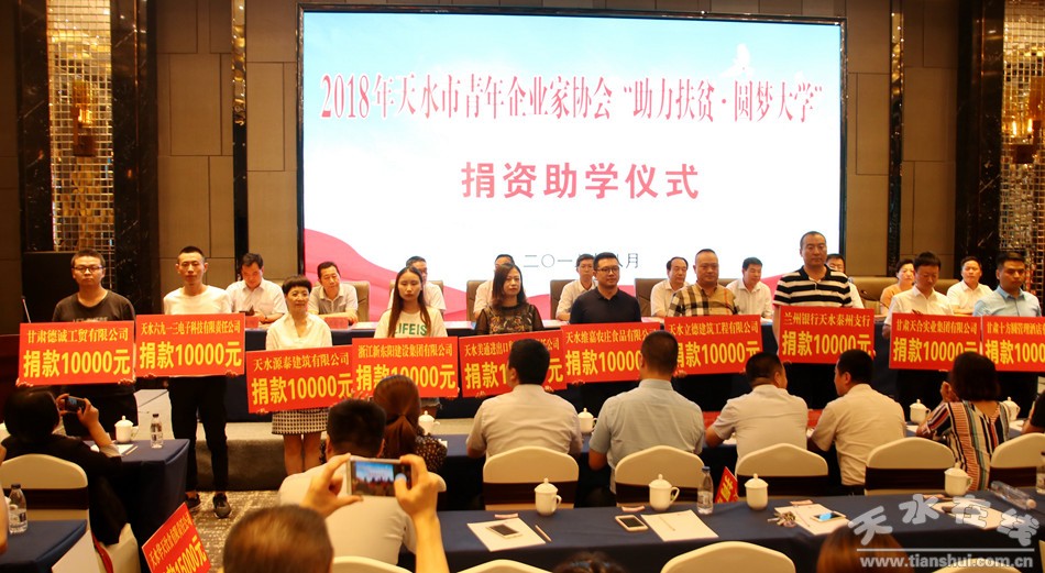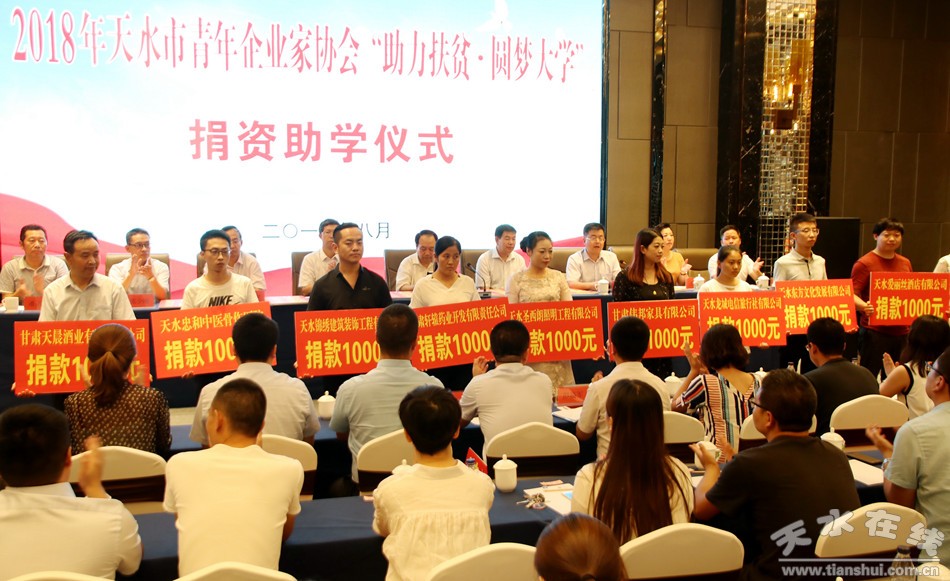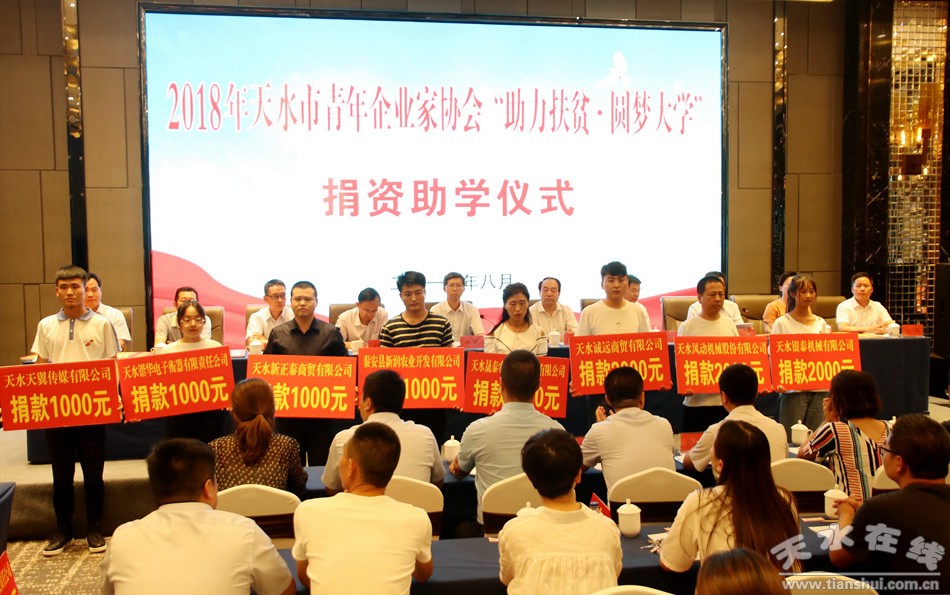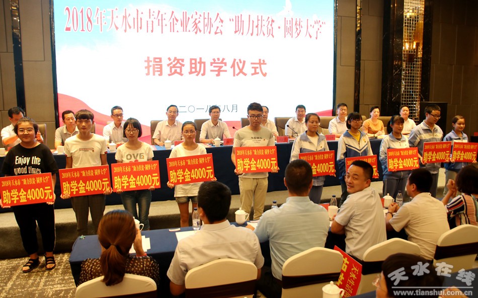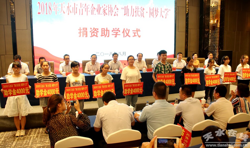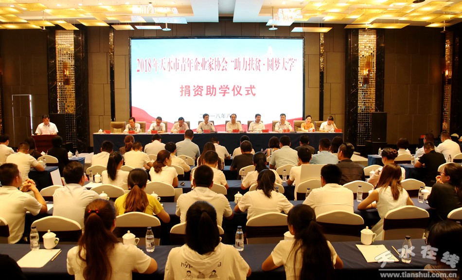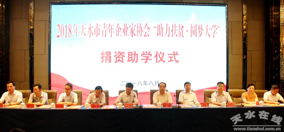 8月20日,我市舉行2018年天水市青年企業(yè)家協(xié)會“助力扶貧·圓夢大學(xué)”捐資助學(xué)儀式。市委常委、副市長劉驍,市人大常委會副主任安志宏,市政協(xié)副主席王振宇出席儀式。