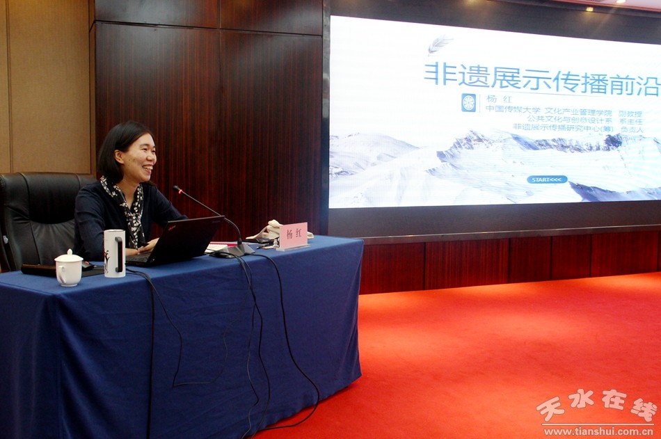 培訓(xùn)班上播放學(xué)習(xí)了文化部黨組成員、副部長項(xiàng)兆倫《非遺保護(hù)的認(rèn)識(shí)與實(shí)踐——非遺九講》視頻講座,中國非物質(zhì)文化遺產(chǎn)保護(hù)中心常務(wù)副主任羅微,雅昌文化集團(tuán)、清華大學(xué)美術(shù)學(xué)院駐新疆哈密傳統(tǒng)工藝工作站培訓(xùn)部主任王智翔,中國傳媒大學(xué)文化發(fā)展研究院副研究員楊紅、甘肅省文化廳公共文化(非物質(zhì)文化遺產(chǎn))處副處長劉衛(wèi)華分別講授了“聯(lián)合國教科文組織《保護(hù)非物質(zhì)文化遺產(chǎn)公約》和《中華人民共和國非物質(zhì)文化遺產(chǎn)法》要義”、“傳統(tǒng)工藝振興經(jīng)驗(yàn)分享”、“非物質(zhì)文化遺產(chǎn)的傳播與展示”、“非物質(zhì)文化遺產(chǎn)保護(hù)專項(xiàng)資金申報(bào)管理經(jīng)驗(yàn)分享”等課程。 培訓(xùn)班上還分享了甘肅省非物質(zhì)文化遺產(chǎn)保護(hù)優(yōu)秀實(shí)踐案例,天水市文化和旅游局黨組副書記魏國柱介紹了“天水市非物質(zhì)文化遺產(chǎn)保護(hù)傳承經(jīng)驗(yàn)”,隴南市武都高山戲保護(hù)中心主任尹利寶分享了“隴南武都高山戲保護(hù)歷程”,陜西省藝術(shù)研究院副研究員、西安鼓樂研究保護(hù)中心副主任郭丹,蘭州市皋蘭縣太平鼓協(xié)會(huì)副會(huì)長魏懷東,臨夏青韻磚雕有限公司總經(jīng)理范祥軍、敦煌市文化館館長趙虎也分別交流分享了當(dāng)?shù)胤俏镔|(zhì)文化遺產(chǎn)的保護(hù)經(jīng)驗(yàn)與成果。培訓(xùn)班還組織了優(yōu)秀案例觀摩,學(xué)員實(shí)地考察了天水伏羲廟、南北宅子、飛天雕漆廠,就太昊伏羲祭典、相關(guān)民俗及天水雕漆制作技藝等非物質(zhì)文化遺產(chǎn)項(xiàng)目保護(hù)成績進(jìn)行了現(xiàn)場(chǎng)交流。