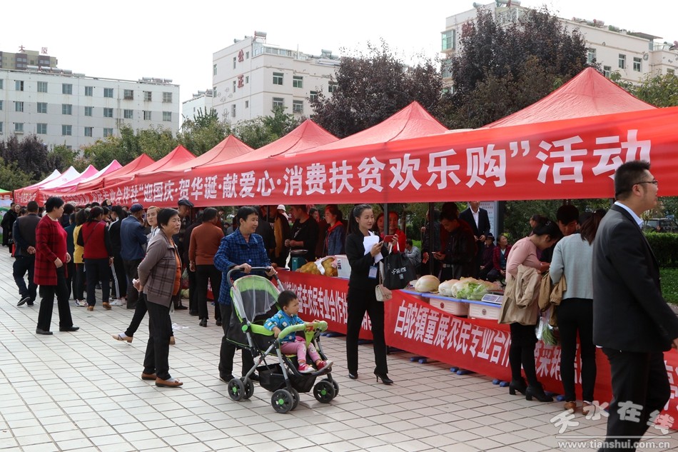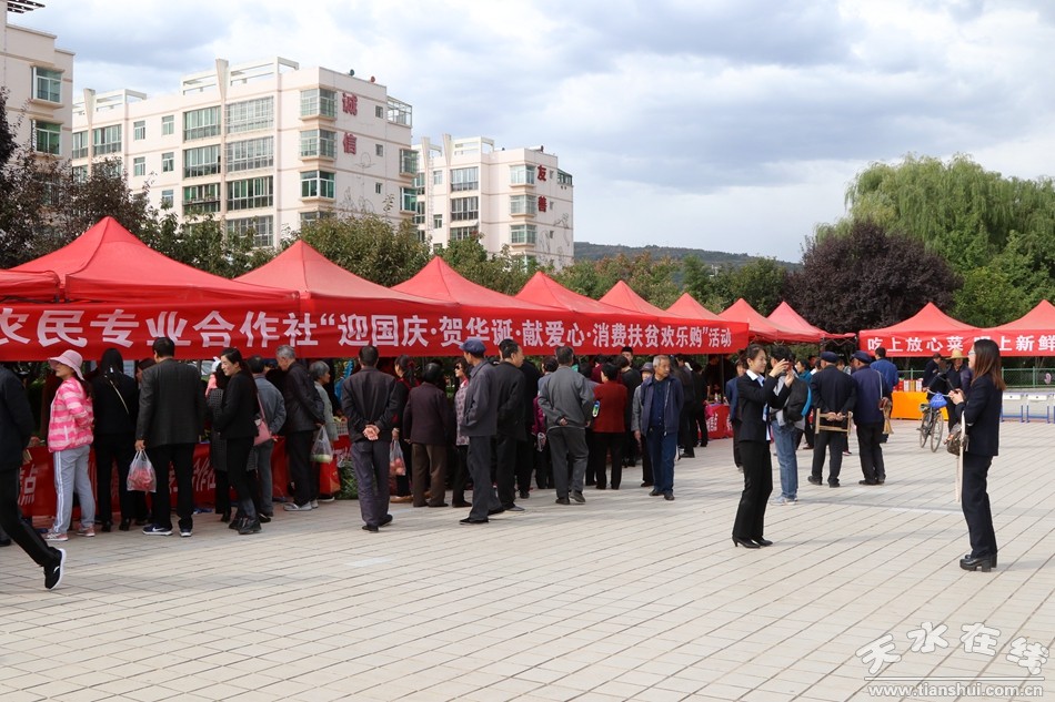 在慶祝偉大祖國69周歲生日之際,9月30日至10月6日,清水縣農(nóng)發(fā)公司聯(lián)合18鄉(xiāng)鎮(zhèn)20余家蔬菜種植合作社在軒轅廣場舉辦為期七天的“迎國慶•賀華誕•獻(xiàn)愛心•消費(fèi)扶貧歡樂購”活動。