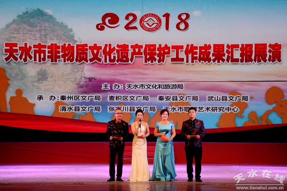 10月26日晚,由天水市文化和旅游局主辦,秦州區(qū)文廣局、麥積區(qū)文廣局、秦安縣文廣局、武山縣文廣局、清水縣文廣局、張家川縣文廣局,天水市歌舞藝術(shù)研究中心承辦的2018天水市非物質(zhì)文化遺產(chǎn)保護(hù)工作成果匯報(bào)展演在秦州大劇院舉行!盎▋骸薄⑿∏、鞭桿舞、蠟花舞、旋鼓舞等輪番上演,演員們精彩的演出讓觀眾感受到了傳統(tǒng)文化散發(fā)的無窮魅力。市人大常委會(huì)副主任王曉琴、市政協(xié)副主席蘇定武觀看演出。