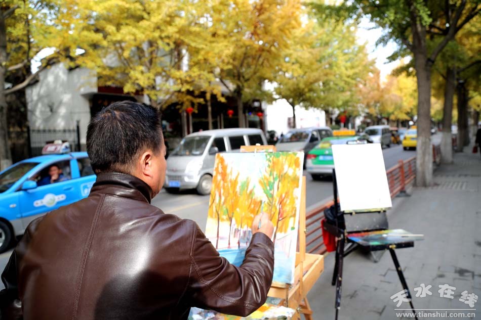 。10月30日上午,天水市美術(shù)家協(xié)會主席、天水師范學(xué)院美術(shù)與設(shè)計學(xué)院院長賈利珠帶領(lǐng)16級油畫專業(yè)的幾名學(xué)生來到天水網(wǎng)紅街(黃金大道)——青年北路寫生,用畫筆用色彩描繪天水美景。)