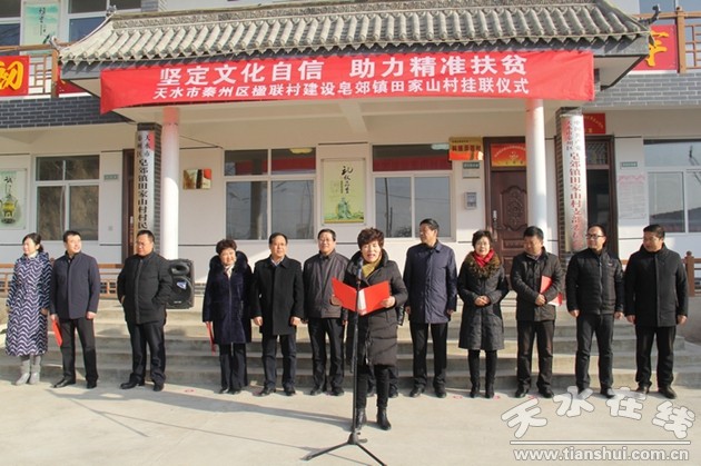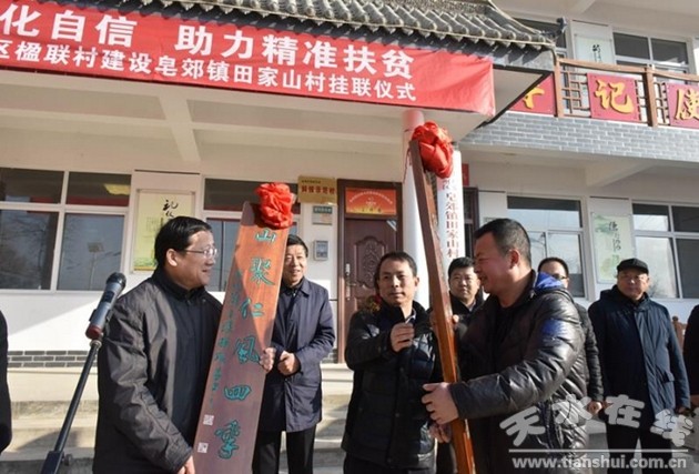 掛聯(lián)儀式上,市領導蒲朝暉、屈光平等為村民代表授聯(lián),并親自上門為農戶懸掛楹聯(lián);皂郊鎮(zhèn)負責人介紹了田家山村基本情況;秦州區(qū)文廣局負責人介紹了全區(qū)楹聯(lián)村建設情況。