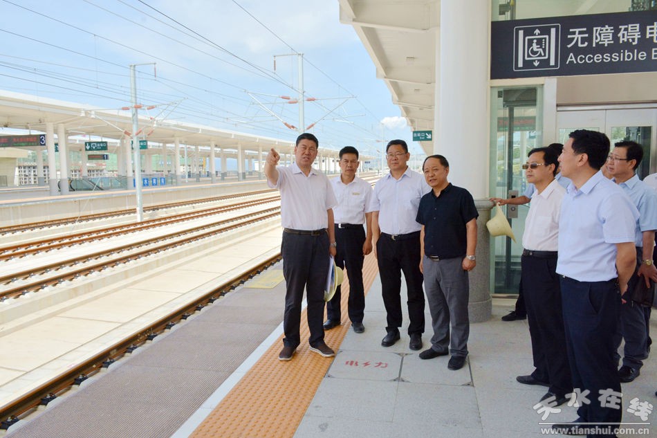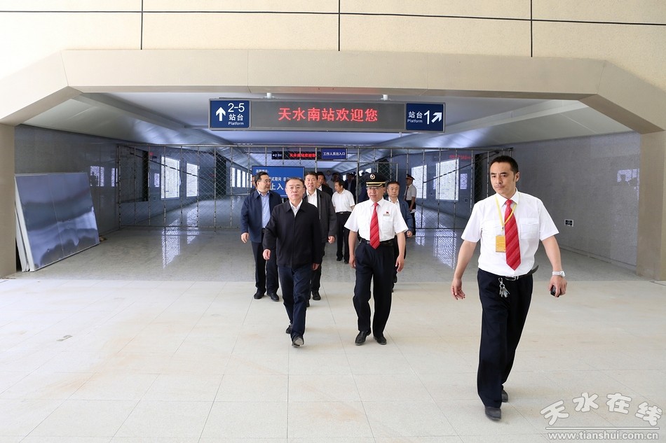 ▲2017年7月6日,天水市副市長張建杰帶領市委宣傳部、市公安局、市文化旅游局、火車站等部門單位負責人到天水南站實地檢查寶蘭高鐵開通準備工作。