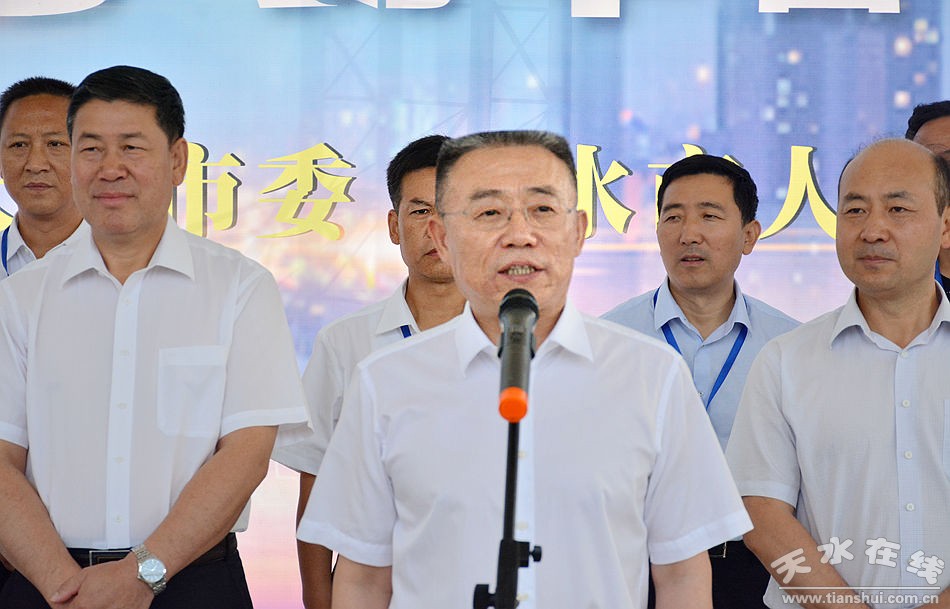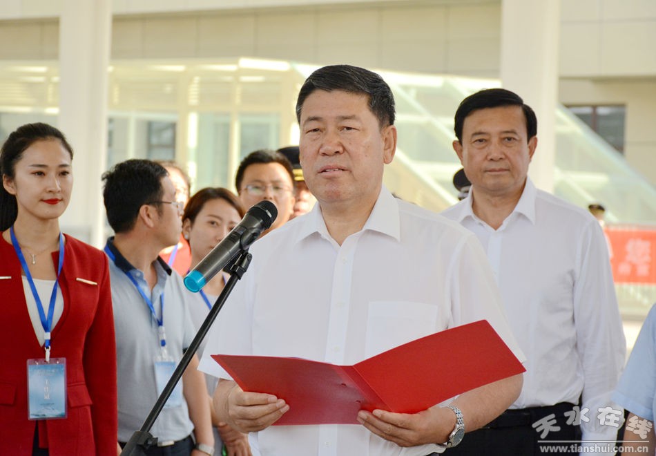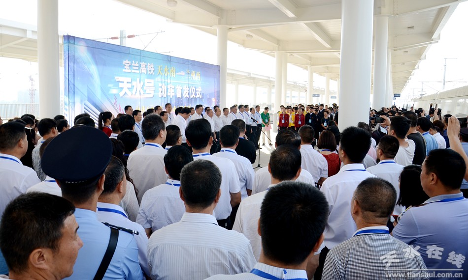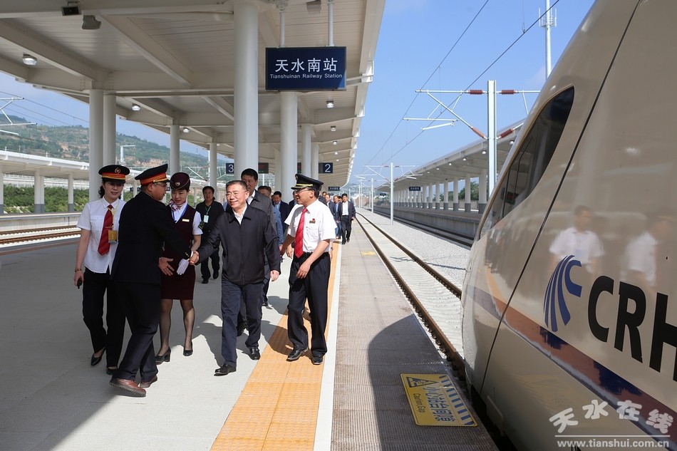 他說,寶蘭高鐵在天水的正式通車運營,這是天水交通運輸史上具有里程碑意義的一件大事,也是全市人民期望已久,翹首相盼的一件喜事,從今天起,天水市邁入了“高鐵時代”,要乘寶蘭高鐵開通運營的東風,緊緊依托天水深厚的歷史文化、優(yōu)越的交通區(qū)位、豐富的旅游資源、宜居自然環(huán)境等優(yōu)勢,把天水加快建設成為世界華人尋根祭祖圣地,集文化、旅游、康體、養(yǎng)生、養(yǎng)老于一體的旅游休閑目的地,中國西部特色優(yōu)質(zhì)農(nóng)產(chǎn)品生產(chǎn)加工基地,絲綢之路甘肅黃金段的重要節(jié)點城市,關中——天水經(jīng)濟區(qū)次核心城市,隴東南區(qū)域性現(xiàn)代化大城市,要加大對天水的宣傳推介力度,讓全國了解天水,讓天水走向全國。要加大開放力度,積極融入國家“一帶一路”戰(zhàn)略,開展更大范圍、更廣領域和更高層次的經(jīng)貿(mào)合作和人才交流,吸引更多客商前來投資興業(yè)。要加強對高鐵規(guī)范優(yōu)質(zhì)服務和文明禮貌建設,使高鐵成為對外宣傳天水和外界了解感知天水的重要窗口。