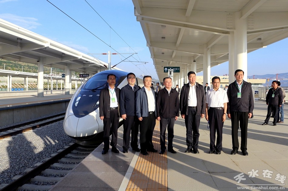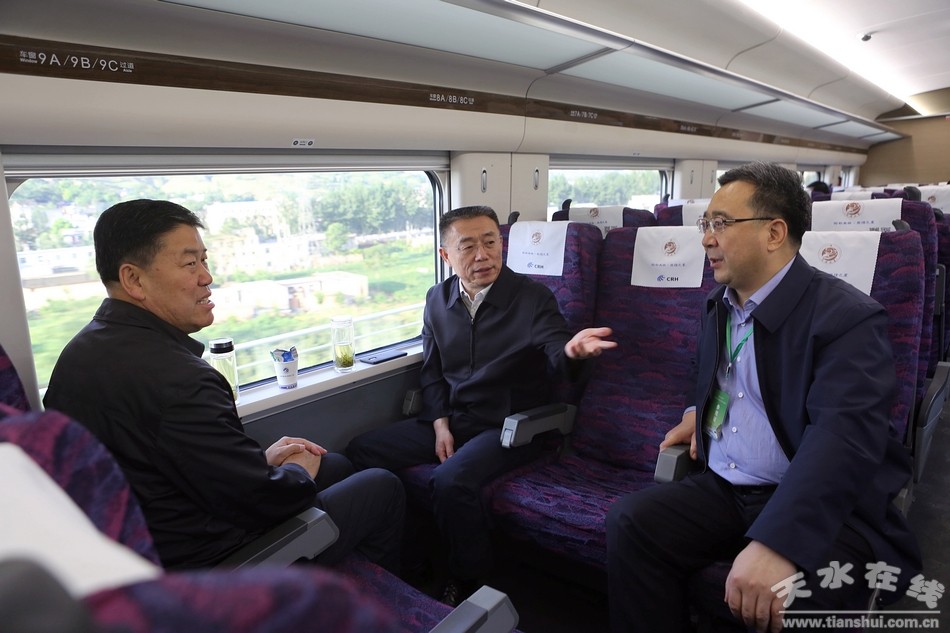 ▲2017年6月6日,天水市委書記王銳,市委副書記、代市長王軍帶領市直相關部門及秦州區(qū)、麥積區(qū)、秦安縣負責同志,會同蘭新鐵路甘青公司負責人,搭乘寶蘭高鐵列車檢查寶蘭客專天水段沿線環(huán)境整治工作。