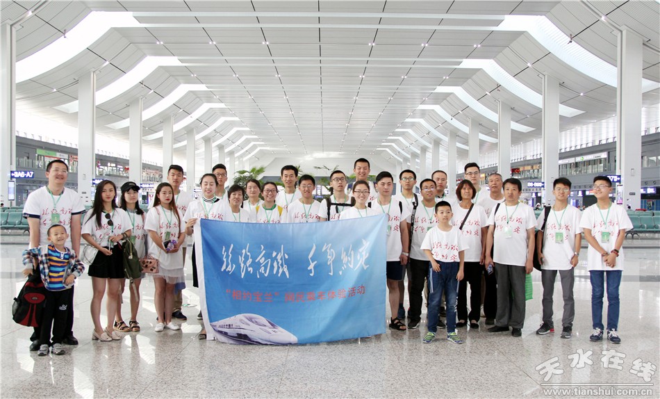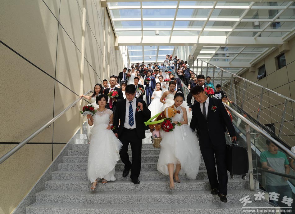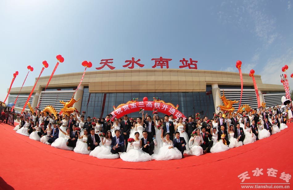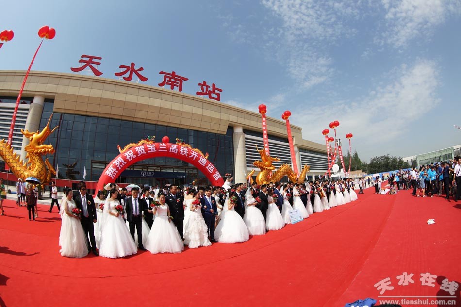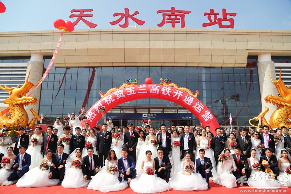 ▲百對新人從蘭州西站搭乘D2654次動車抵達天水南站