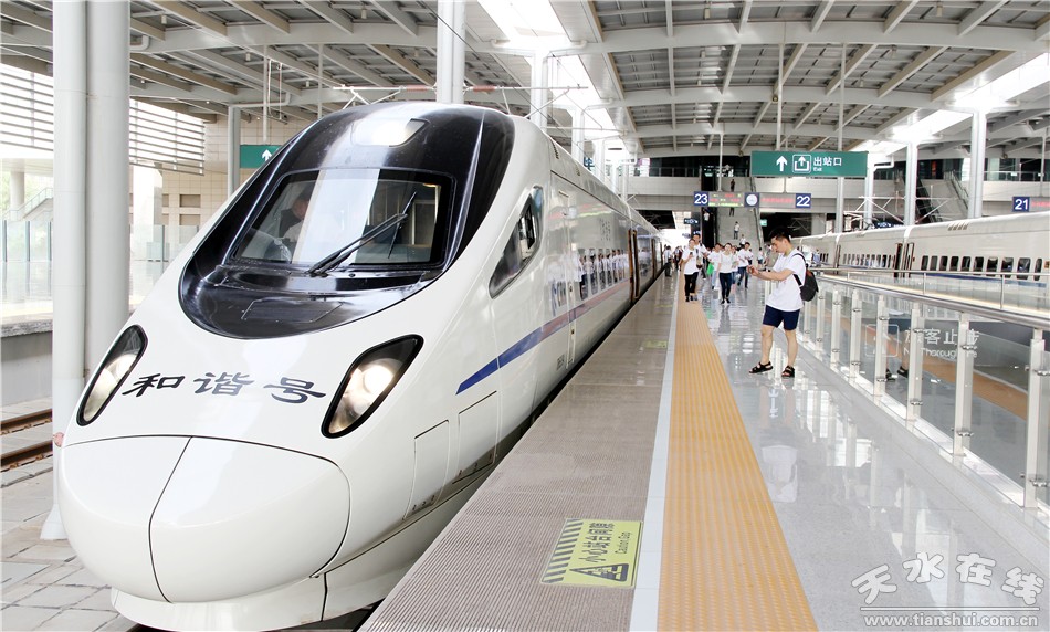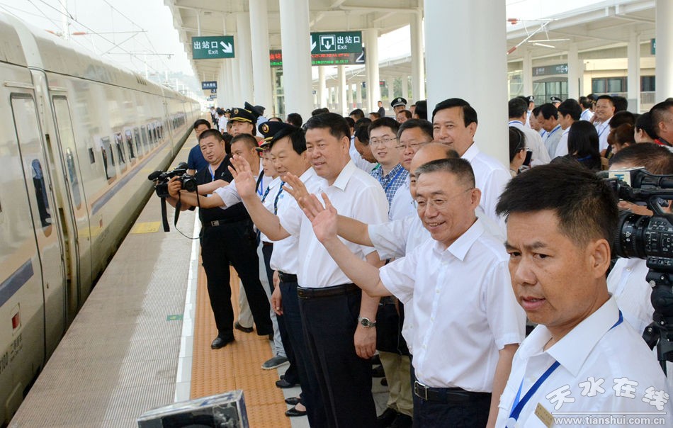 ▲2017年7月9日早上8時23分,隨著天水市委書記王銳宣布“天水號”動車發(fā)車,“天水號”一聲響亮的鳴笛劃過天水南站上空,天水迎來了真正意義上的“高鐵時代”,同時也標志著絲路高鐵最后一公里打通。當日備受社會各界關注的寶蘭高鐵天水南——蘭州西“天水號”動車首發(fā)儀式在天水南站隆重舉行。