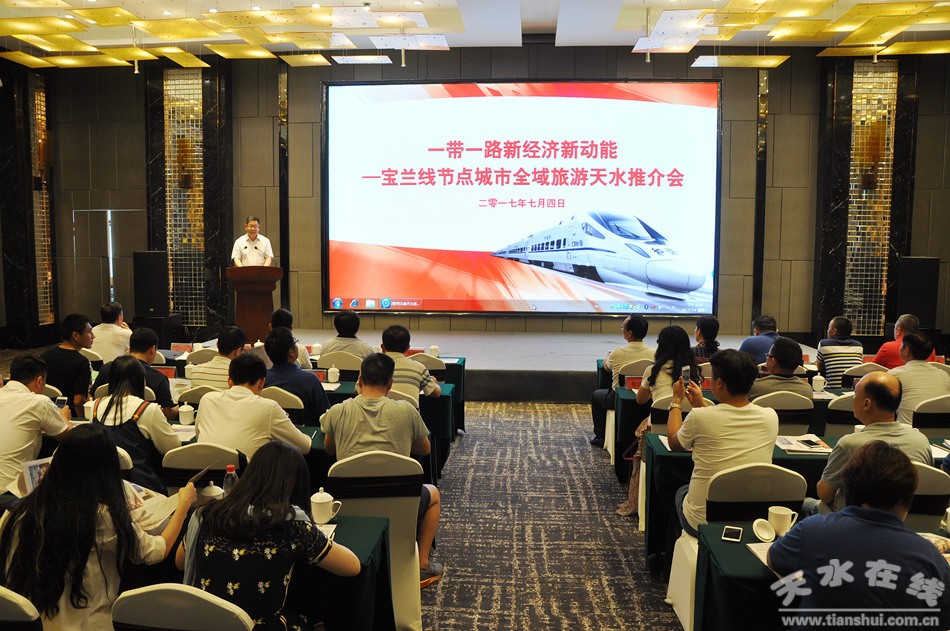 ▲2017年7月4日,在寶蘭高鐵即將開通之際,天水市舉行高鐵旅游推介會,向全國推介天水旅游資源和產(chǎn)品。來自陜西、新疆、廣東、河南、重慶、浙江、甘肅等7個省、市、自治區(qū)的20余家新聞媒體參加了推介會。副市長張建杰出席會議并致辭,陜西省旅發(fā)委副巡視員韓升良、咸陽市人大副主任薛沛應邀出席推介會。