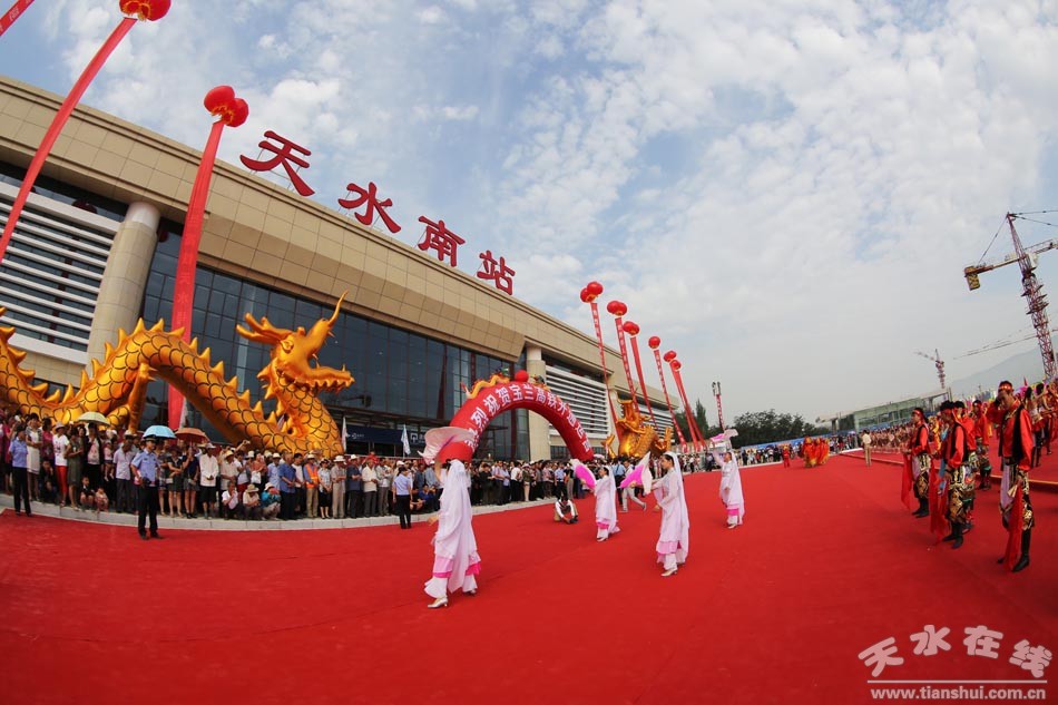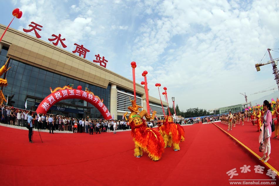 ▲天水南站站前廣場載歌載舞慶賀寶蘭高鐵正式開通。