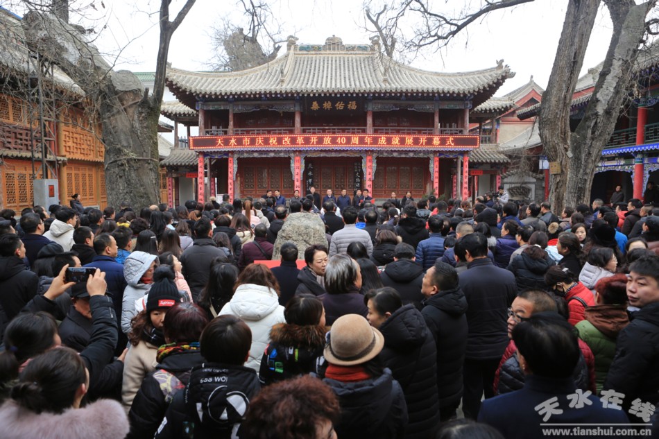 逯克宗主持開幕式。他在講話時(shí)說,40年來,我市積極順應(yīng)改革開放的歷史大潮,譜寫了一幅幅轉(zhuǎn)型跨越發(fā)展的絢麗篇章。40年來,在歷屆市委、市政府的正確領(lǐng)導(dǎo)下,全市上下解放思想,銳意創(chuàng)新,勵(lì)精圖治,攻堅(jiān)克難,經(jīng)濟(jì)社會(huì)發(fā)生了翻天覆地變化。特別是黨的十八大以來,我市以習(xí)近平新時(shí)代中國特色社會(huì)主義思想為指導(dǎo),深入貫徹落實(shí)習(xí)近平總書記視察甘肅重要講話和“八個(gè)著力”重要指示精神,牢固樹立和貫徹新發(fā)展理念,統(tǒng)籌推進(jìn)“五位一體”總體布局和“四個(gè)全面”戰(zhàn)略布局,經(jīng)濟(jì)社會(huì)發(fā)展質(zhì)量不斷提升,改革開放不斷向縱深推進(jìn),城鄉(xiāng)規(guī)劃體系日益完善,生態(tài)綜合治理及城鄉(xiāng)建設(shè)成效顯著,新型城鎮(zhèn)化速度和質(zhì)量同步提升,美麗鄉(xiāng)村建設(shè)多點(diǎn)開花,人居環(huán)境明顯改觀,區(qū)域交通樞紐地位更加凸顯,就業(yè)、住房、社保等熱點(diǎn)難點(diǎn)問題有效緩解,;尽⒍档拙、促公平的民生安全網(wǎng)更加牢靠,經(jīng)濟(jì)社會(huì)持續(xù)健康發(fā)展,更好地滿足全市人民日益增長的美好生活需要,在天水發(fā)展的歷史上譜寫了更加濃墨重彩的嶄新篇章,在全面建成小康社會(huì)的征程上邁出了更加堅(jiān)實(shí)的步伐。