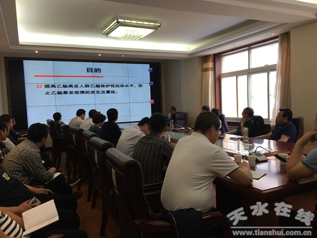 為了保證我市農(nóng)村地區(qū)成人乙腦減毒活疫苗接種工作規(guī)范、有序、安全進(jìn)行,5月31日,天水市疾控中心組織各縣區(qū)疾控中心主任、免疫規(guī)劃科科長(zhǎng)、市疾控中心部分相關(guān)科室科長(zhǎng)及工作人員共計(jì)30余人參加甘肅省重點(diǎn)地區(qū)成人乙腦疫苗接種工作視頻培訓(xùn)會(huì)議。