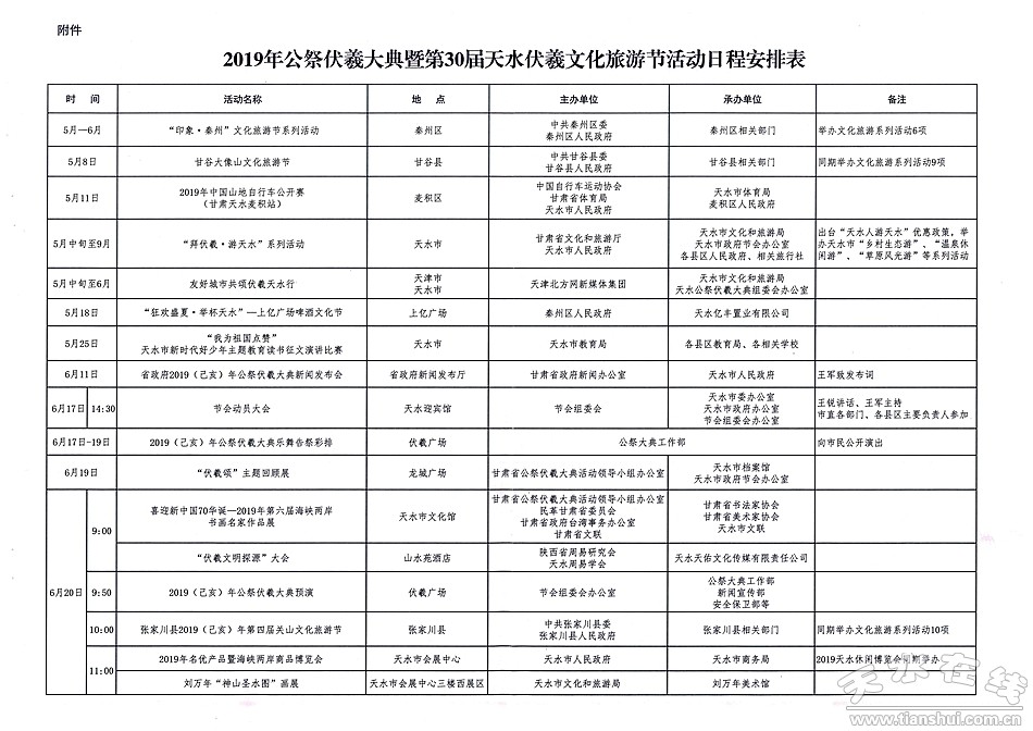 重磅!天水市2019年“節(jié)會(huì)”活動(dòng)日程安排表出爐