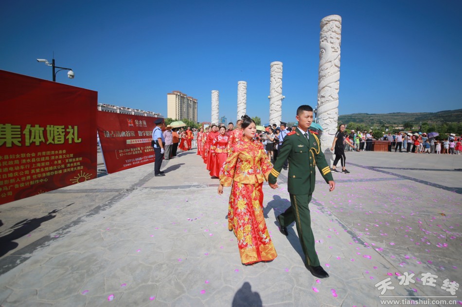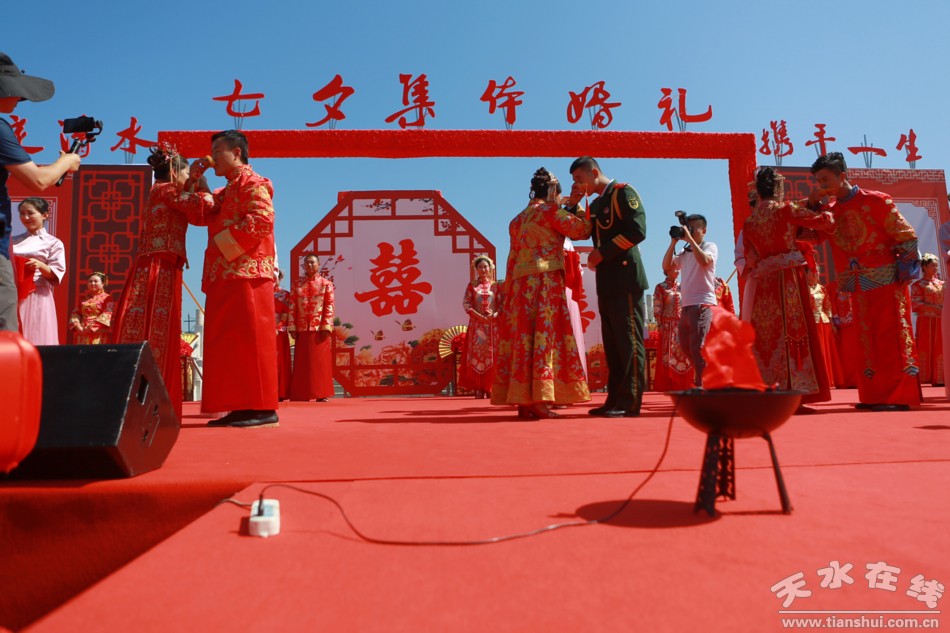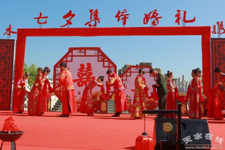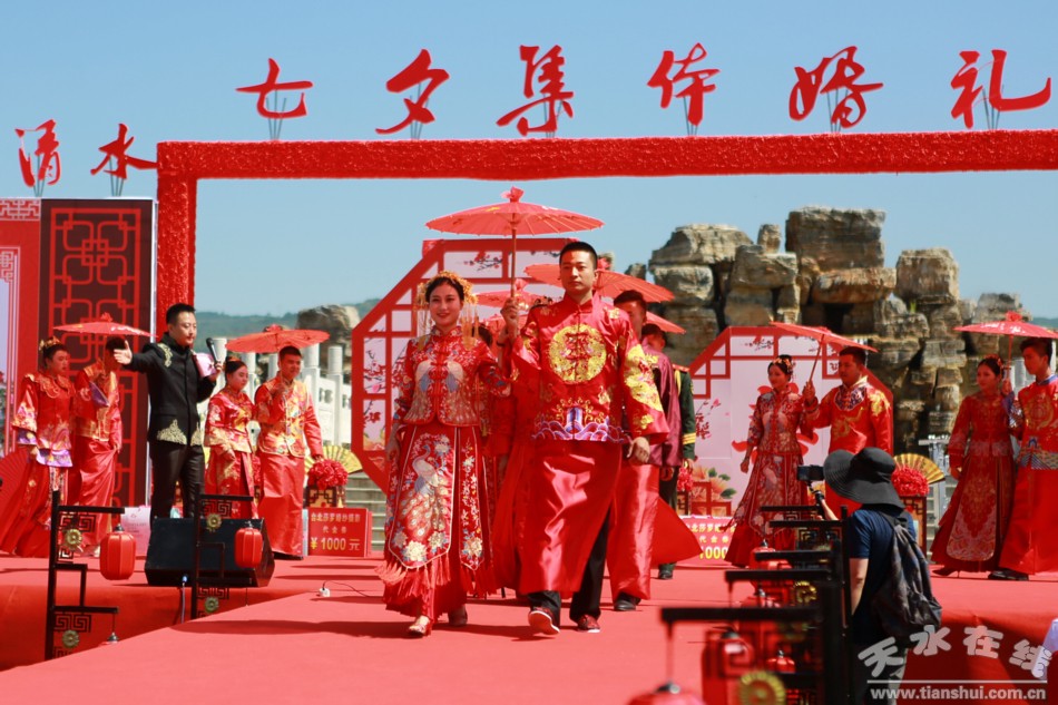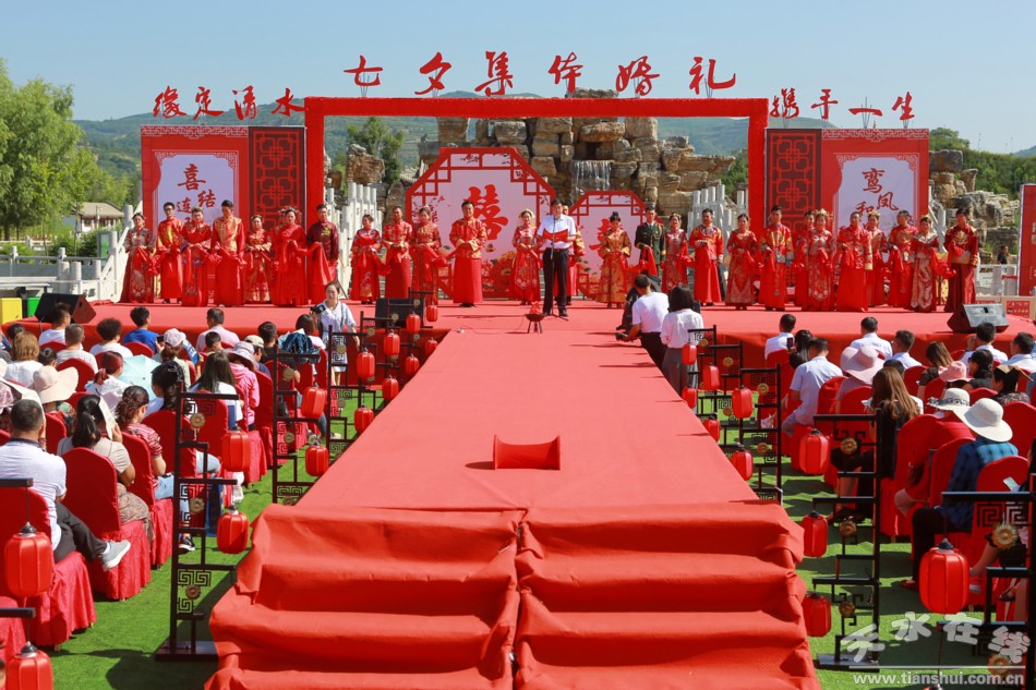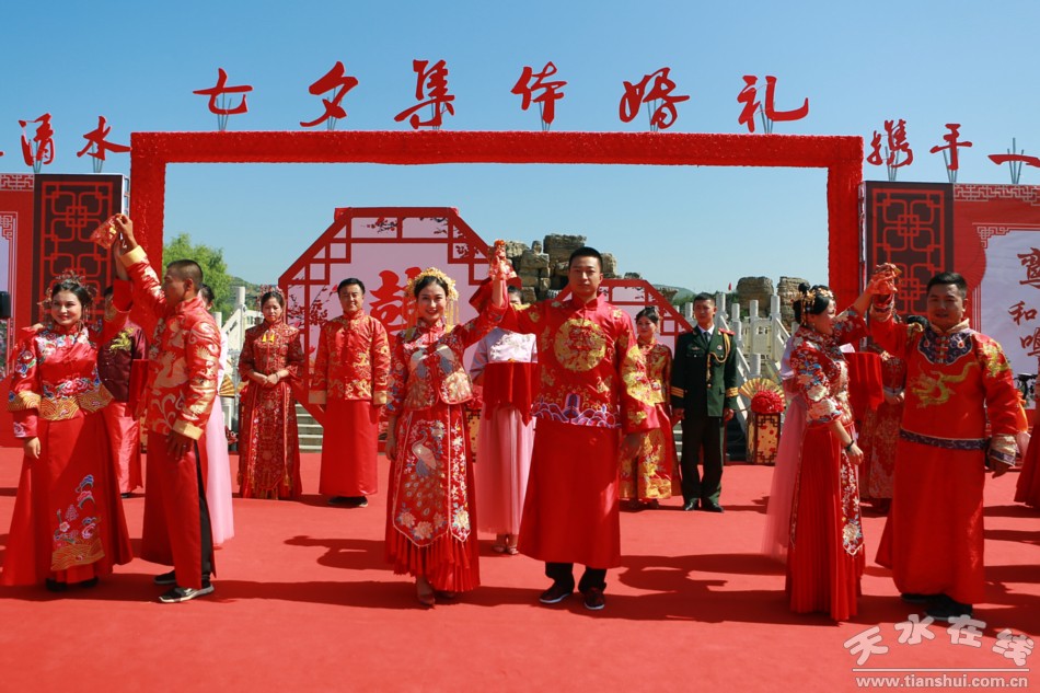牽?椗蜗嗤,鵲橋翩翩筑佳期。8月7日是我國的傳統(tǒng)節(jié)日七夕,清水縣在軒轅湖公園舉辦第二屆“緣定清水·攜手一生”七夕集體婚禮活動(dòng),14對(duì)新人身穿中式傳統(tǒng)婚服,在人們的祝福中喜結(jié)連理。