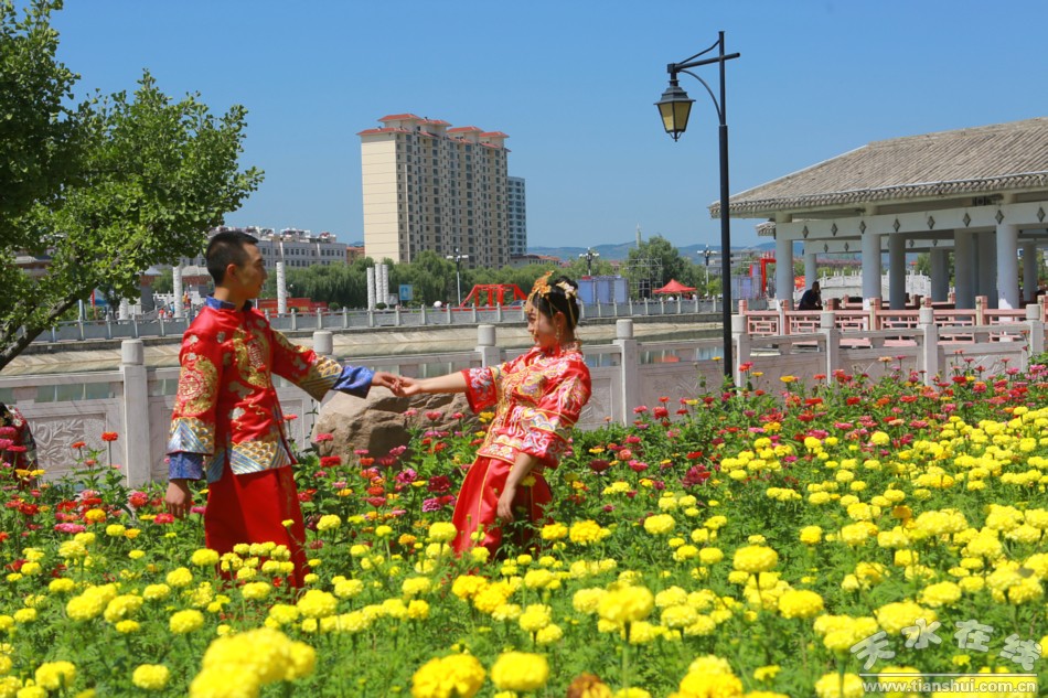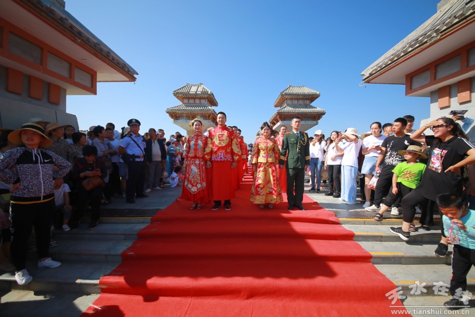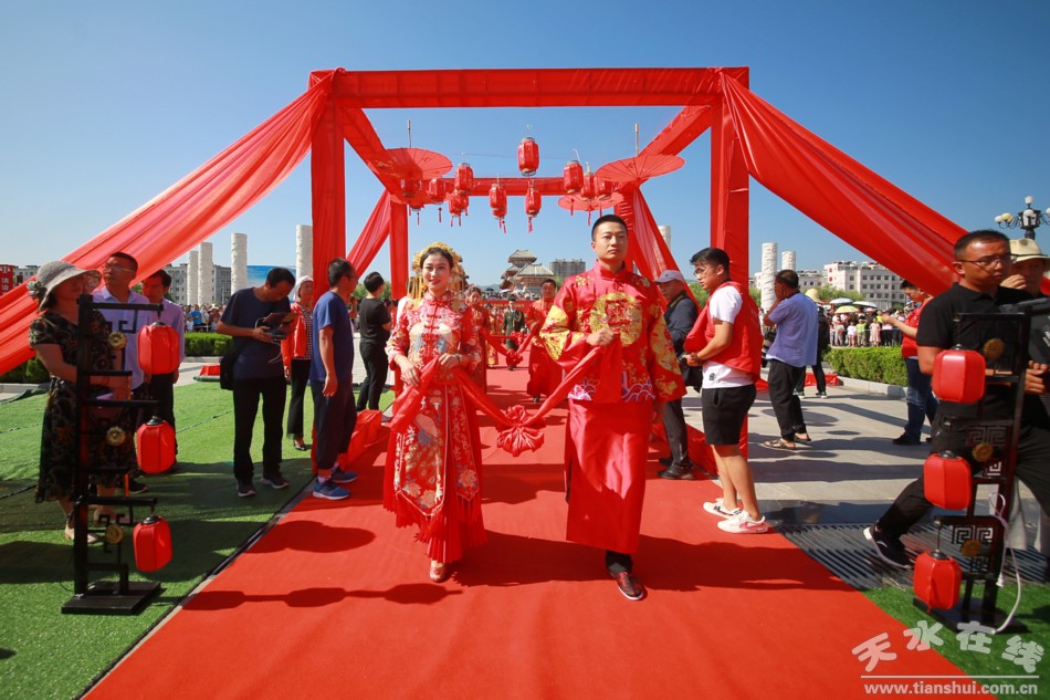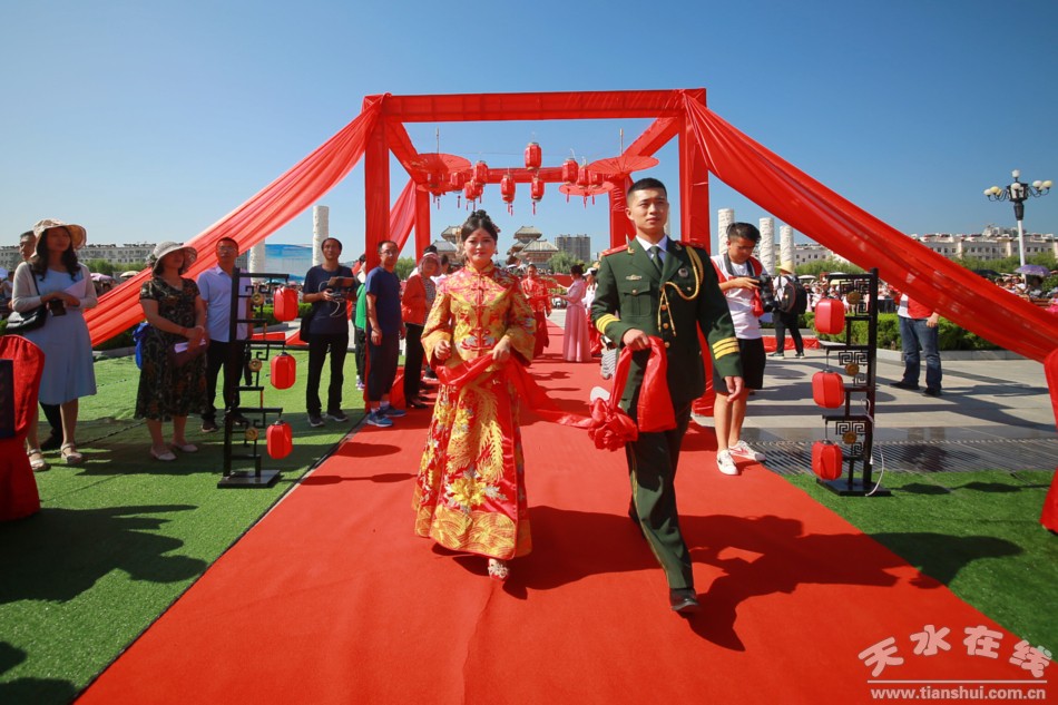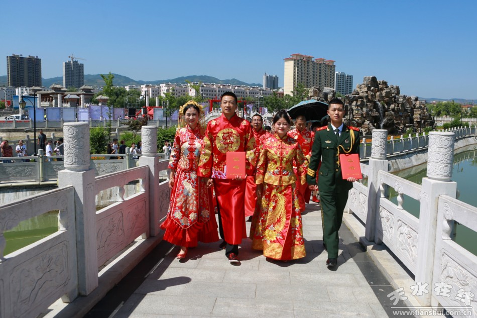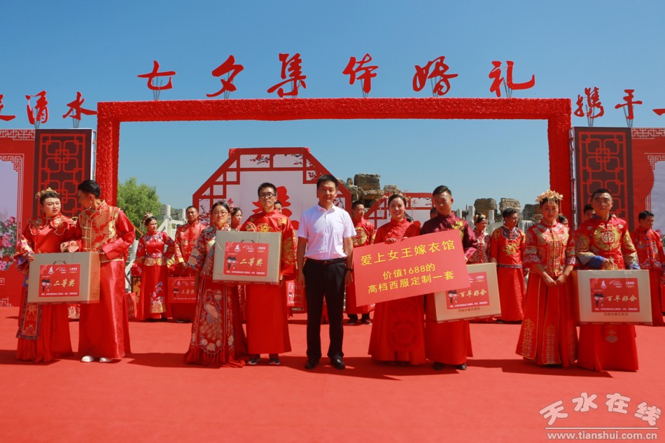 牽?椗蜗嗤,鵲橋翩翩筑佳期。8月7日是我國的傳統(tǒng)節(jié)日七夕,清水縣在軒轅湖公園舉辦第二屆“緣定清水·攜手一生”七夕集體婚禮活動(dòng),14對(duì)新人身穿中式傳統(tǒng)婚服,在人們的祝福中喜結(jié)連理。
