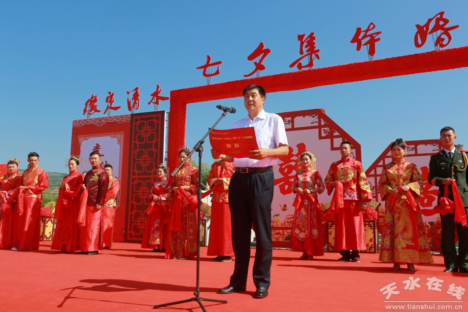 市人大常委會(huì)副主任、清水縣委書記劉天波在婚禮上致辭并向新人送上美好祝福。他說,舉辦集體婚禮,旨在倡導(dǎo)婚事新辦,抵制高價(jià)彩禮,弘揚(yáng)文明新風(fēng)。今年是清水縣整縣脫貧摘帽年,是打贏脫貧攻堅(jiān)戰(zhàn)的關(guān)鍵之年,也是創(chuàng)建全國文明城市的關(guān)鍵之年。深入推進(jìn)精神扶貧,大力整治高價(jià)彩禮,全面深化精神文明建設(shè),是各級(jí)各部門的重大任務(wù)和廣大干部群眾的應(yīng)盡之責(zé)。希望新人們?cè)诮窈蟮膶W(xué)習(xí)、工作和生活中,互幫互助,互敬互愛,尊老愛幼,繼承和發(fā)揚(yáng)中華民族傳統(tǒng)美德,始終做社會(huì)新風(fēng)的示范者和引領(lǐng)者。